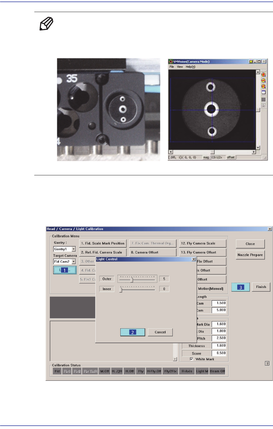 서 보여지는 Calibration Tool상의 Fiducial Mark가 선명하게 보이도록 조명의 밝