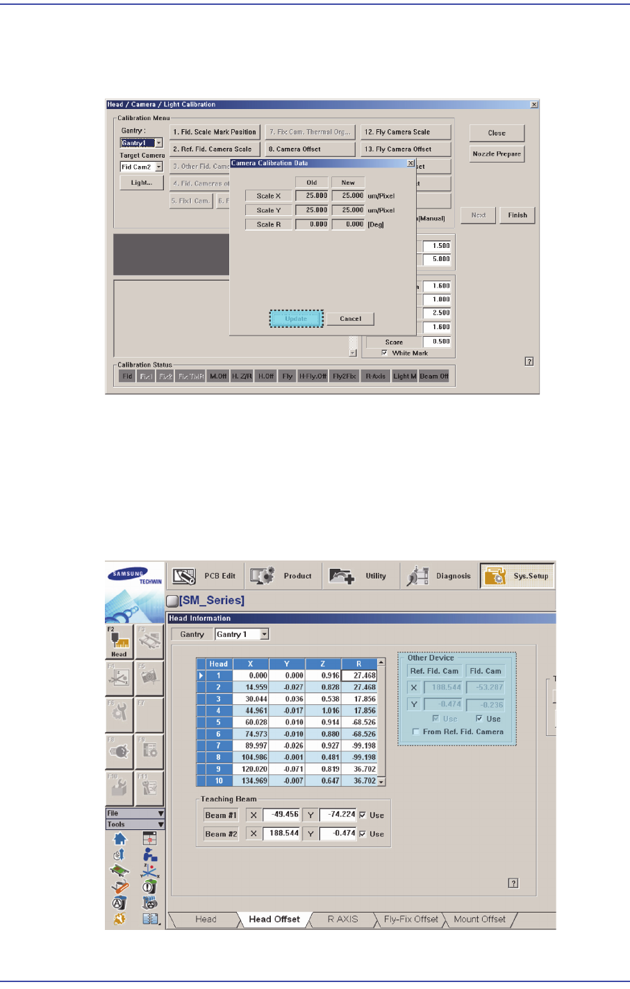 12-46 Samsung Component Place r SM471 Administrator's Guide 메 모 다음의 그림을 참조하여 Calibration Tool 을 ANC 의 Calibration Tool 위치에 올바르게 놓으십시오 . 5. “ Calibration is Prepared. To Calibrate, Click [Next]. ” 라는 메시지가 나타납니다 . 이 때…