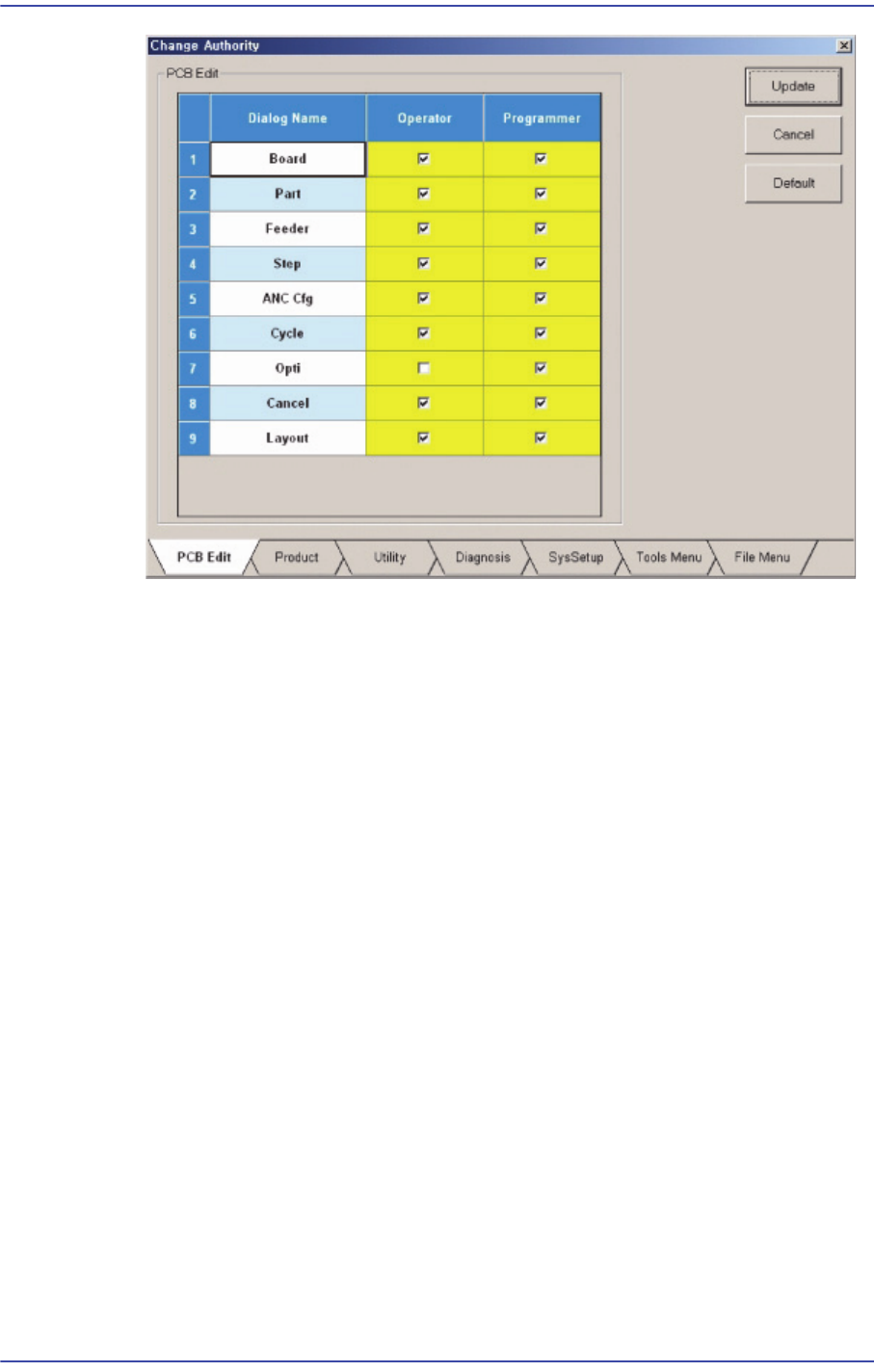 13-21 System Setup <File Menu> 탭 <File Menu> 메뉴의 하위 메뉴들 에 대한 권한을 설정합니다 . 권한 설정 은 Service 모드 이상에서만 사용할 수 있으며 , 설정 화면에서 해당 항 목에 대한 체크박스를 체크하거나 체크를 해제하는 방법으로 설정합니다 . 설정 메 뉴에서 설정한 내용에 따라 해당 메뉴의 하위 메뉴가 다음과 같이 활성…