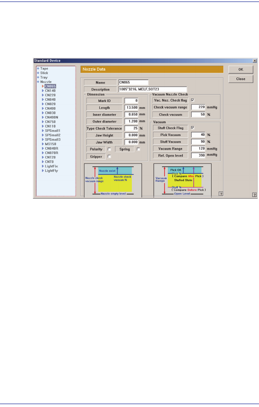 다음의 화면은 리스트박스에서 “Nozzle”을 선택한 경우입니다. Nozzle에 관한 파