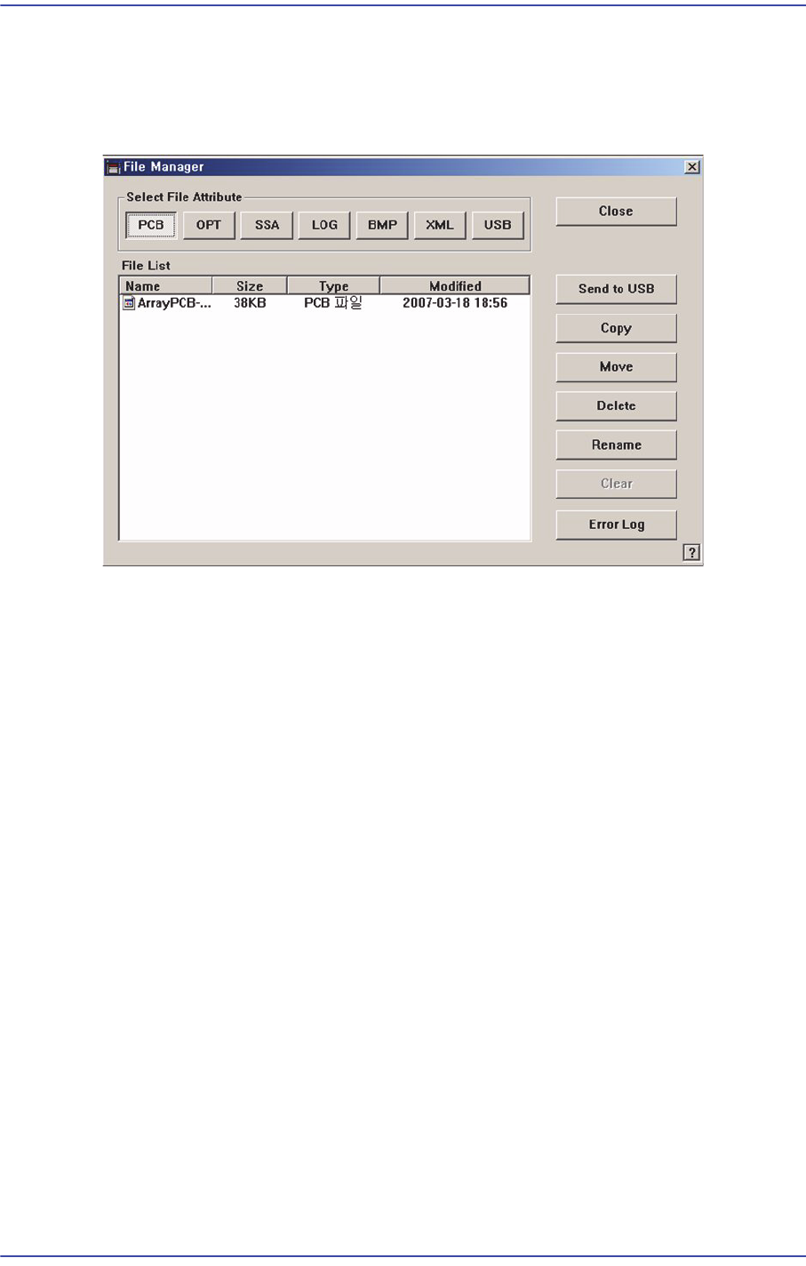 15-8 Samsung Component Place r SM471 Administrator's Guide 15.4. File Man...[F5] PCB 파일의 복사 , 이동 및 삭제 등의 파일 관리를 쉽게 할 수 있도록 합니다 . 그림 15.6 “ File Manager ” 대화상자 <Select File Attri bute> 영역 Select File Attribut…