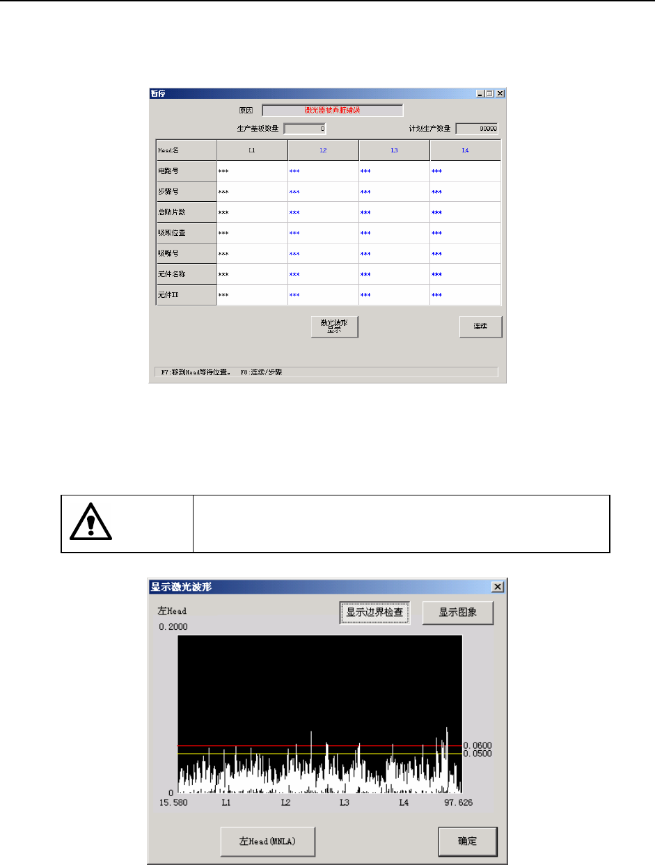 按下“激光波形按钮”后,为了进行激光脏污检查,贴片头会