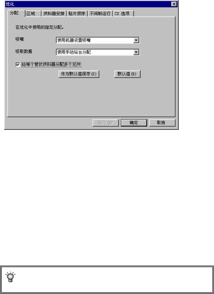 选择用“机器设置”设定的吸嘴配置或使用已优化的吸嘴配置。