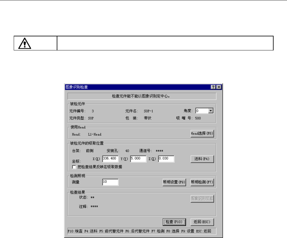 检查后,检查结果被显示在图像识别检查结果中。可进行图像定心时显示“确定”,不能