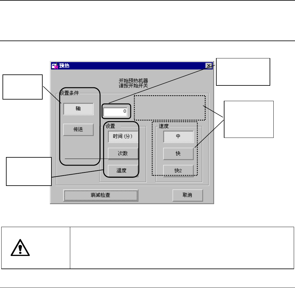 从主画面的菜单栏中选择“维护”→“预热”后,显示下图所示的预热初始化画面的窗口,