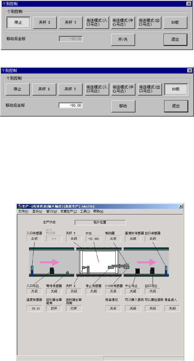 此外,在下图的生产空运行画面中,可以执行基板搬入/搬出等传送运行。