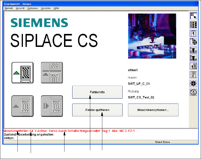 Tritt während der Arbeit ein Fehler auf, wird die entsprechende Fehlermeldung im Statusfeld der