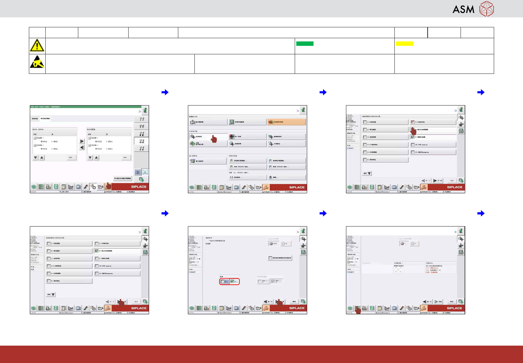 19 WF 4 TX 系列 维护 校准 TH 14分钟 5 / 9 注 意 开 始 维 护 前 , 请 参 阅 用 户 手 册 中 的 安 全 说 明 贴片机状态开启 传送导轨空 注意!遵守防静电守则 工具: T5 易损件: 耗材: www.asm-smt.com 25 点击“Calibration(校准)”图标 26 点击“Automatic Calibration(自动校 准)”图标。 27 点击“Heads and Camer…