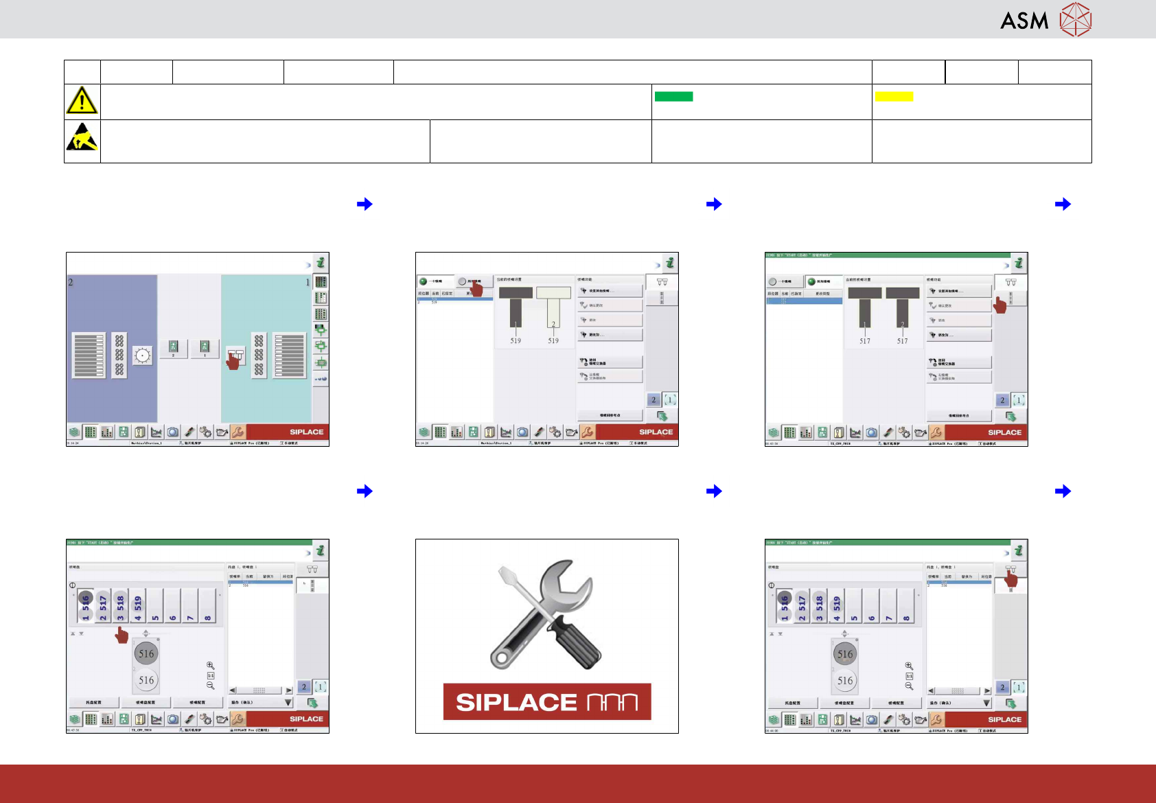 34 检查 517 和 518 是否在吸嘴交换器中。