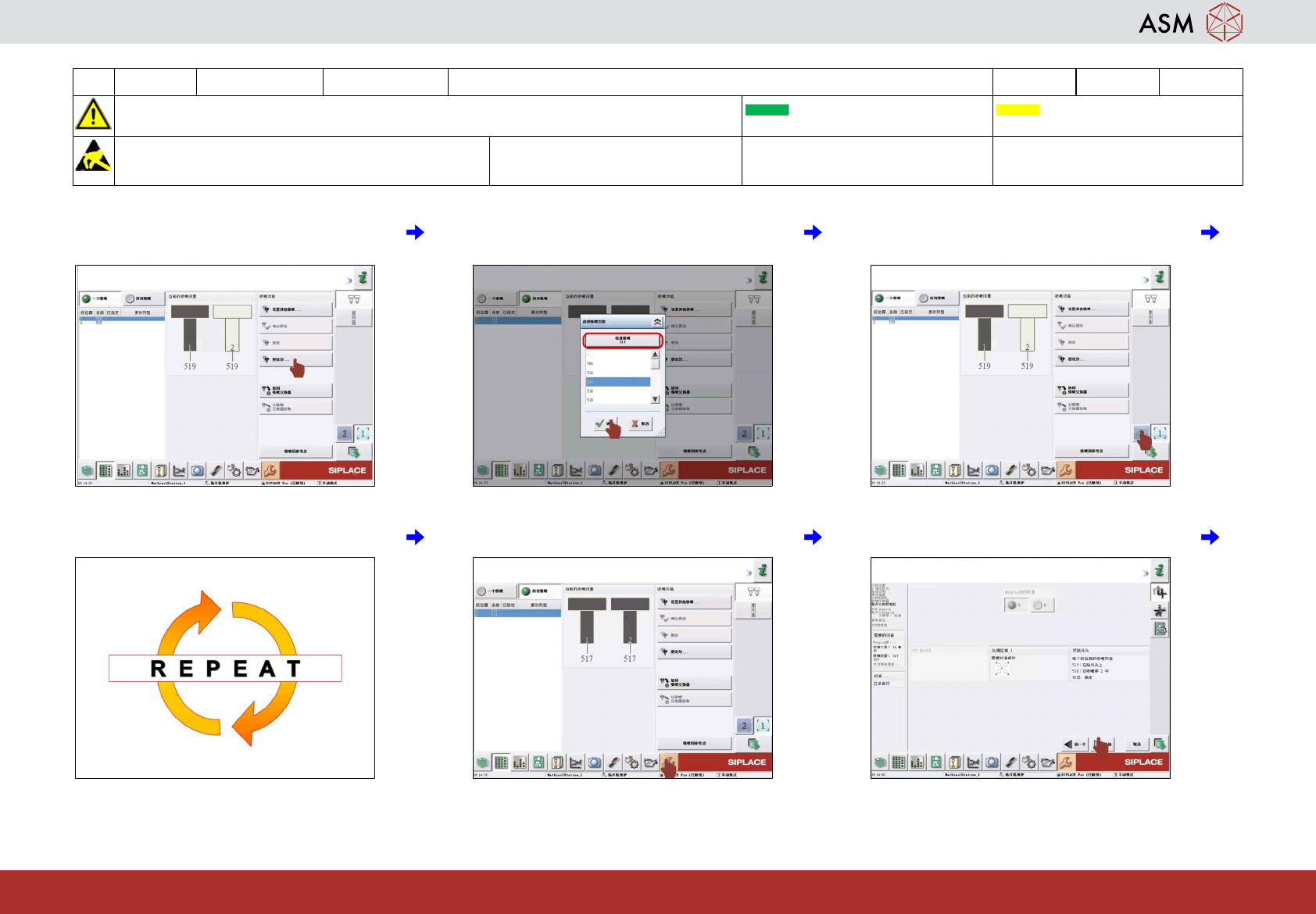 19 WF 4 TX 系列 维护 校准 TH 14分钟 7 / 9 注 意 开 始 维 护 前 , 请 参 阅 用 户 手 册 中 的 安 全 说 明 贴片机状态开启 传送导轨空 注意!遵守防静电守则 工具: T5 易损件: 耗材: www.asm-smt.com 37 点击“Change With(交换为)”图标。 38 选择校准吸嘴,然后点击“OK(确定)”图 标。 39 选择第二个贴片头 TH(若需要) 40 重复步骤 35 …