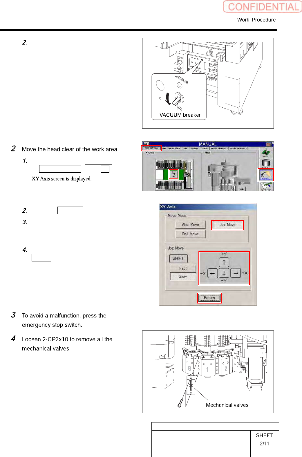 WKGB-10102-01 G200BB Head Maintenance T urn off the V ACUUM b reaker on the power unit part. Click in an ord er of MANUAL menu AXIS M OTION tab XY button. Click the Jog Move button. Press the cursor key to move th e …