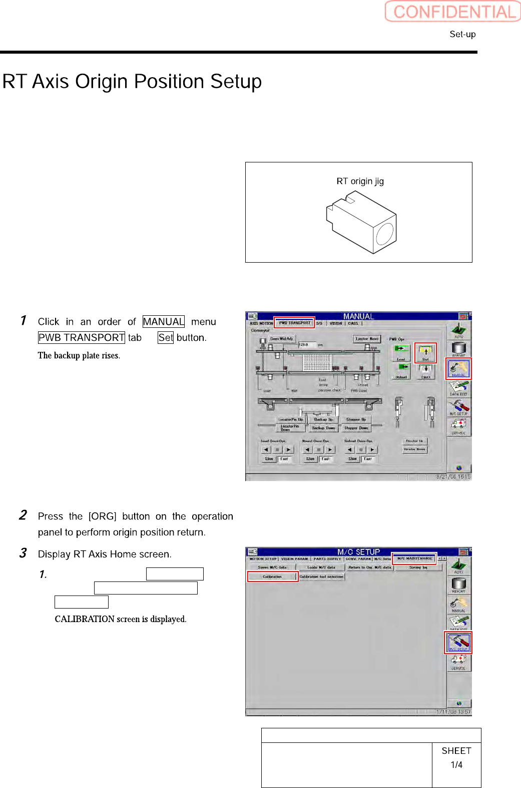 HLGB-10201-01 RT Axis Origin Position Setup Click the Machine Setup b utton on the CALIBRA TION screen. Click the RT Axis Ho me b utton on th e Machine Setup screen. Click the XY button on the RT Axis Home screen. Click …