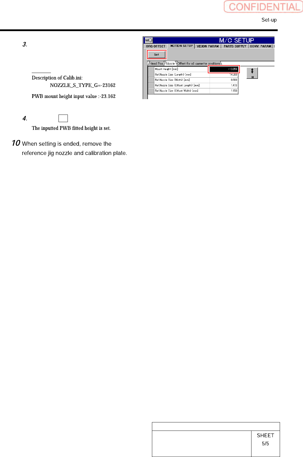 HLGB-10203-01 Acquiring Mounting Stro ke Setu p Input a value of 1/1000 of the valu e described in calib.ini into the Mount height. Example: Press the Set button.