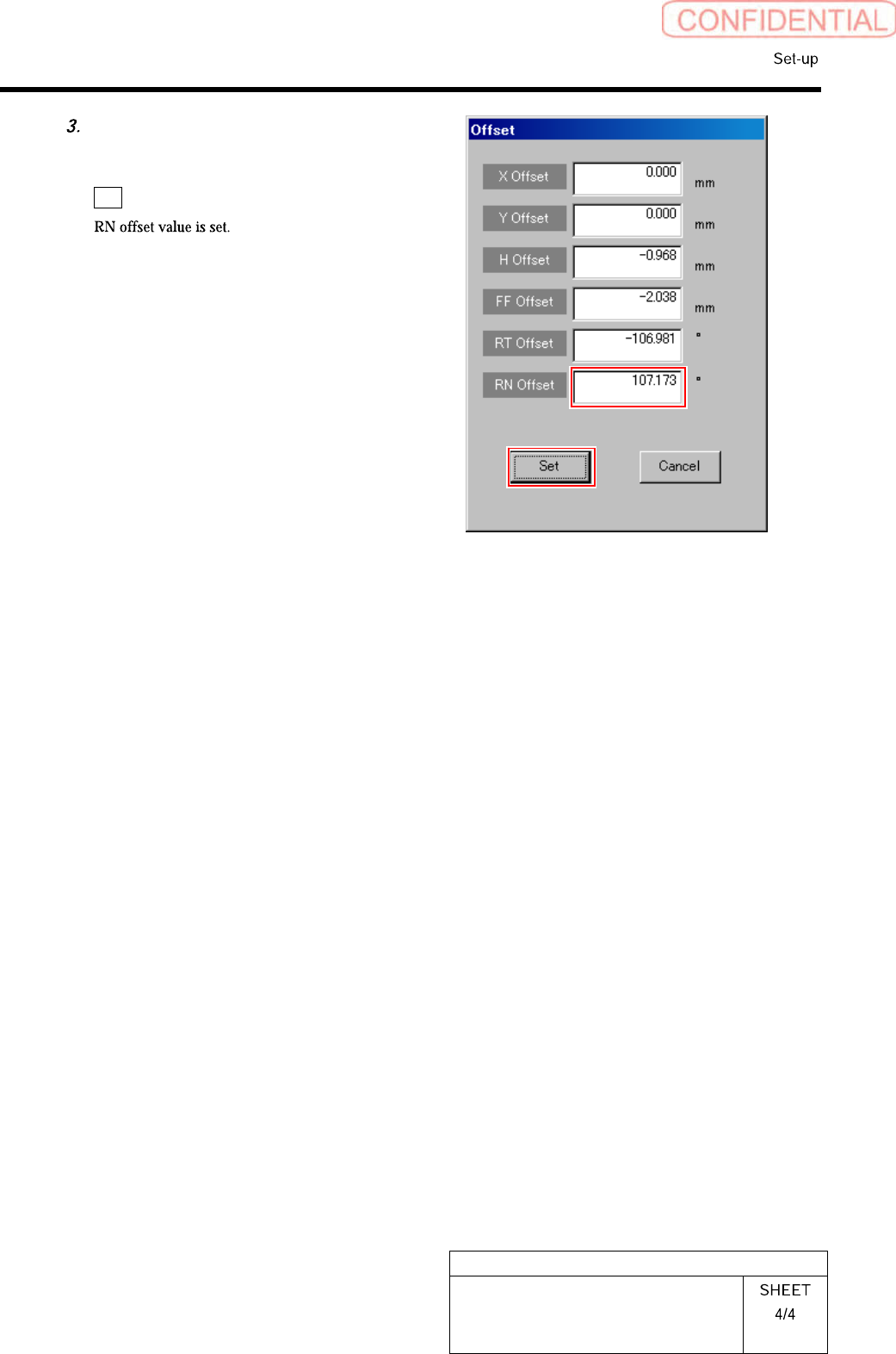 HLGB-10207-01 RN A xis Origin Offset Setup Input the value ( examp le: 1 10.1) obtained in the previous p rocedure into the RN Offset box, and click t he Set button.