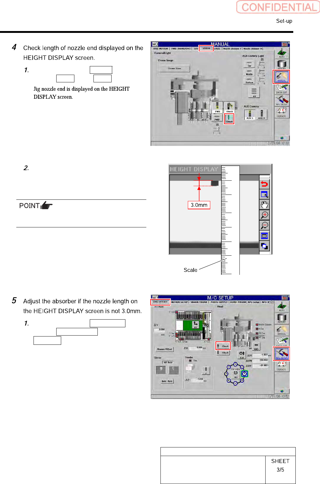 HLGB-10208-01 Pickup Check Camera Setup Click in an ord er of Manual menu  V ision tab  Check button. Apply a sca l e on the screen to ch eck that lengt h of the displayed jig nozzle end is 3.0mm. For actu al dimension…