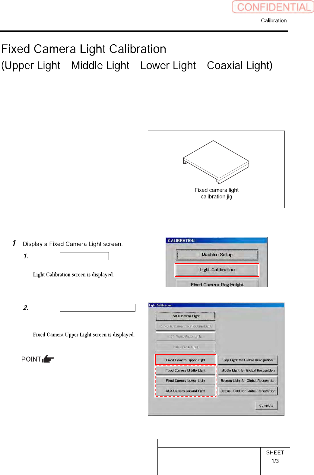 • Fixed camera light calibration jig