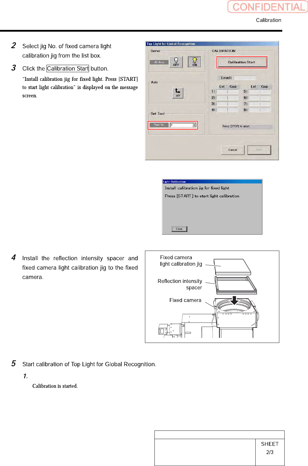 HLGB-10303-01 Light calibration for Global Recognition Remove the fixed came ra light calibration jig and the reflection intensity spacer and click the OK button. ・ When subsequently performing calibrations of Middle Lig…