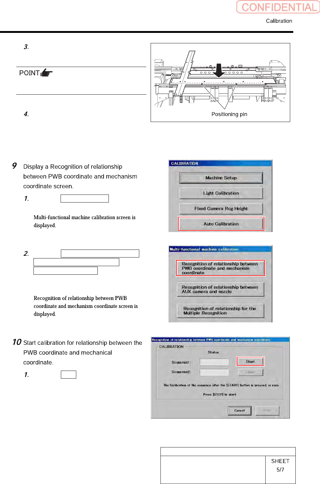 HLGB-10304-01 Auto Calibration (Recognition of relationship betw een PW B coordinate and mechanism coordinate) Press the [Start] button to star t the auto calibration. Click the Y es button. Align the P WB camera to the …