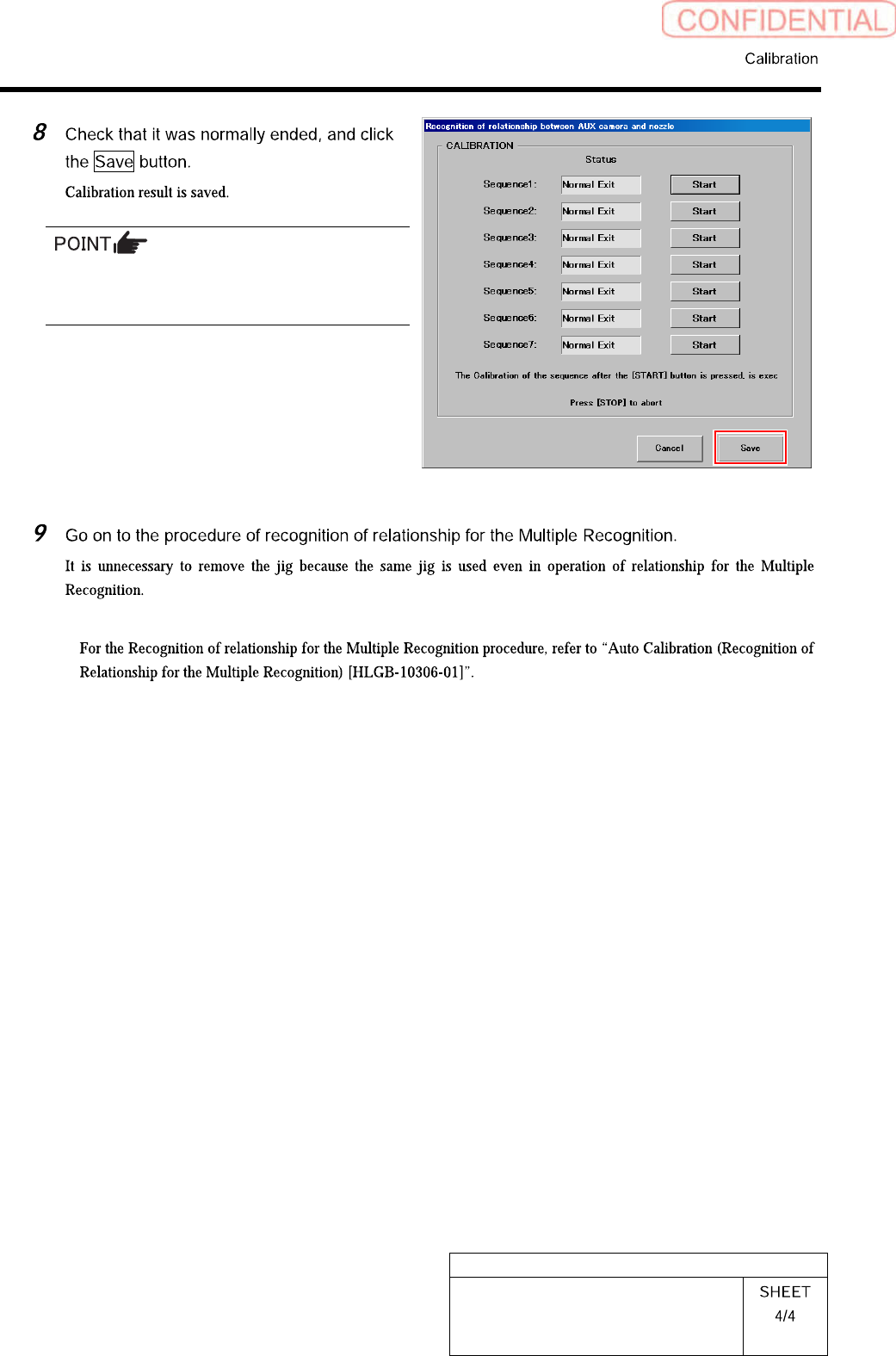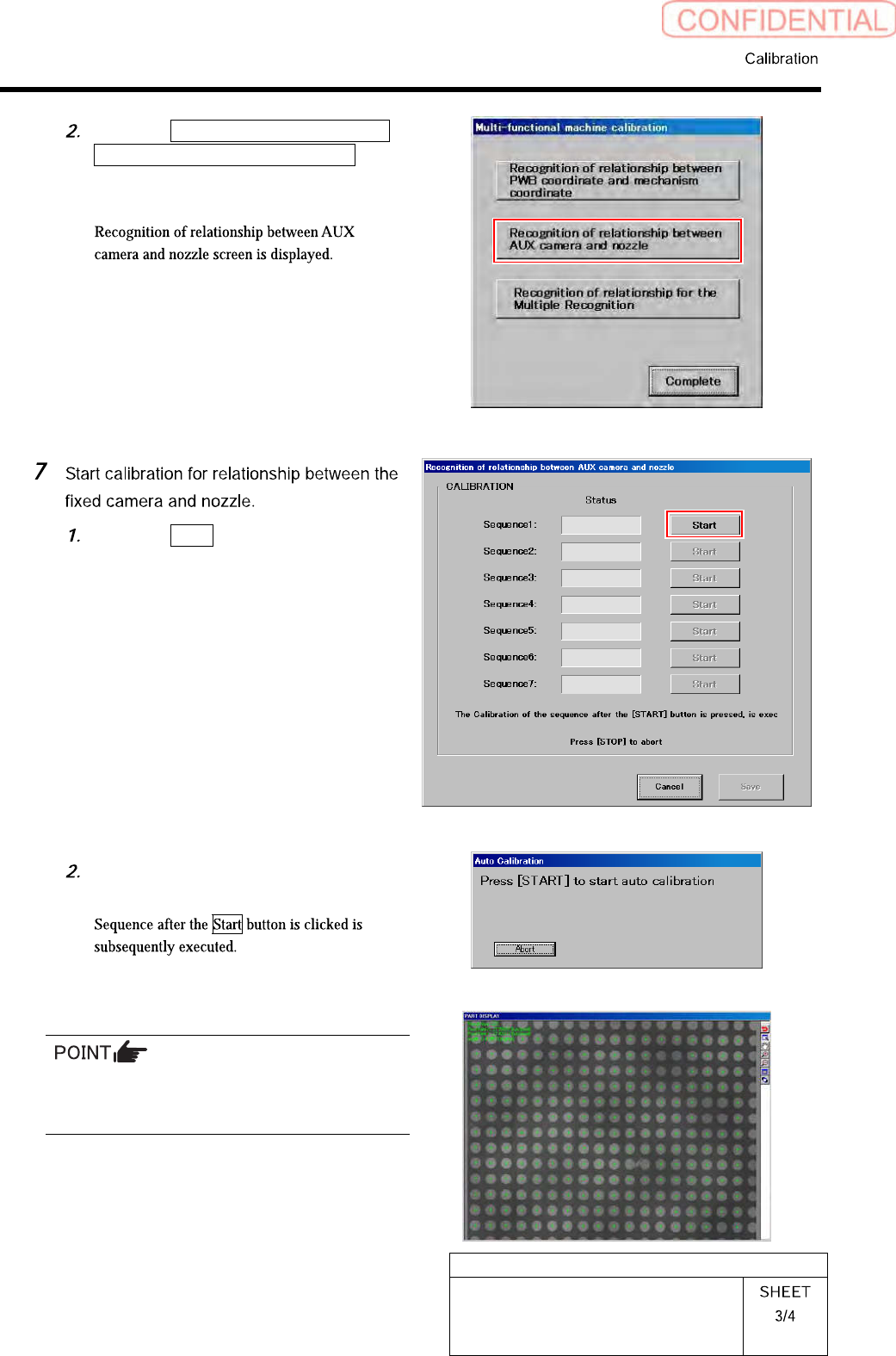 HLGB-10305-01 Auto Calibration (Recognition of Relationship between th e Fixed Camera and Nozzle) Click the Recogn i tion of re lationship between AUX camera and nozzle button on the Multi-funct ional machine calibration…