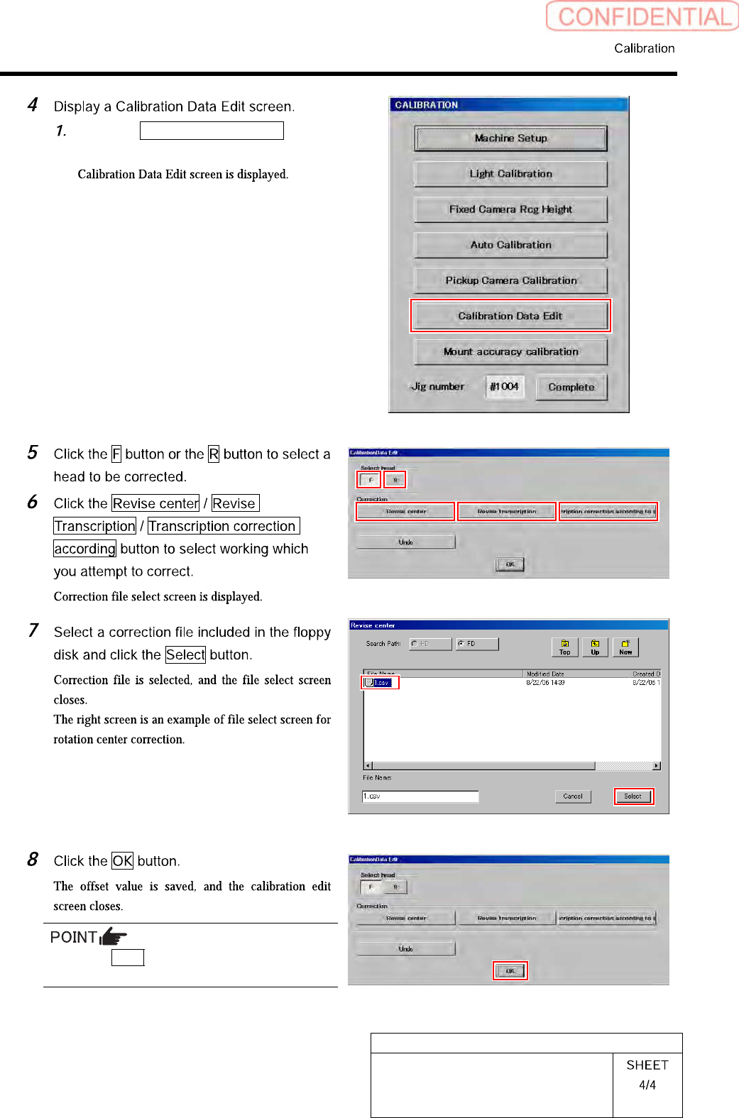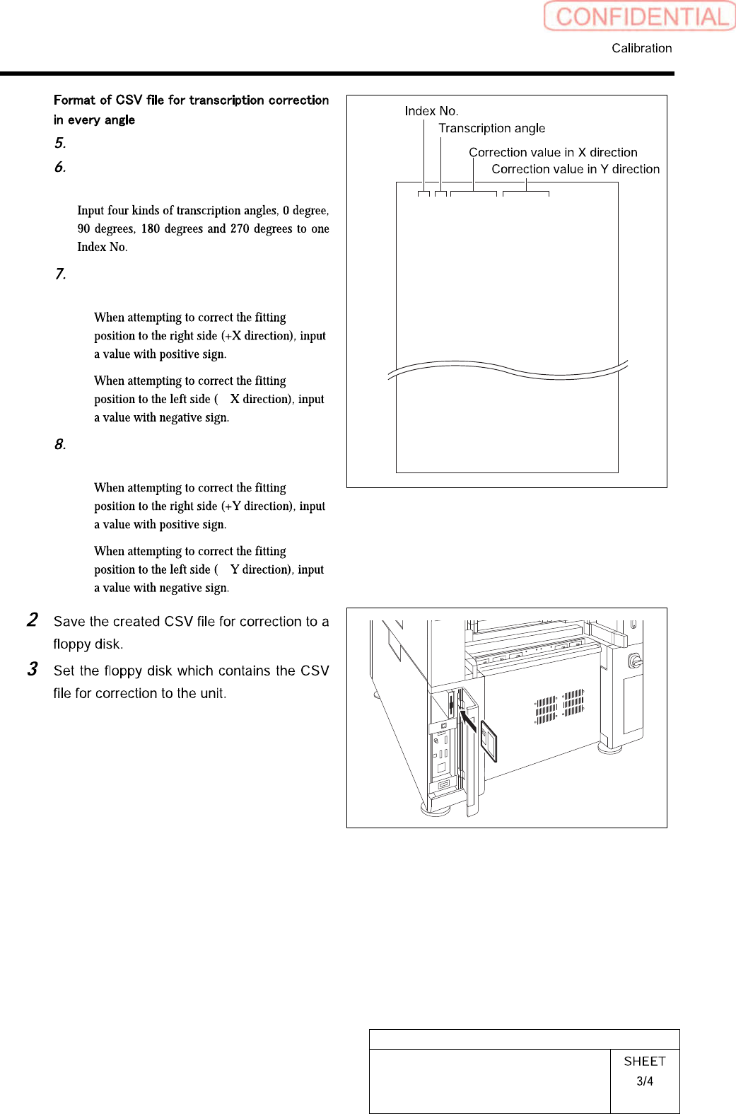 HLGB-10309-01 Calibration Data Edit “1 to 8” on the left row are I ndex No . Input transcription angle into the second row from the left. Input correction am ount in X direction in the third row from the l eft. ・ ・ - Inp…