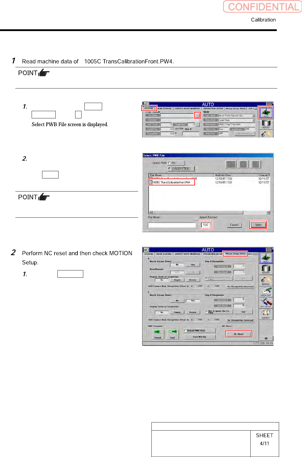 HLGB-10313-01 Mount A ccuracy Calibration [T ranscription calibration] “ ” T o execute the calibration for the rear head, select “1005C transCalibrationRear .PW4”. Click in an order of AUTO menu ST A TUS tab … button…