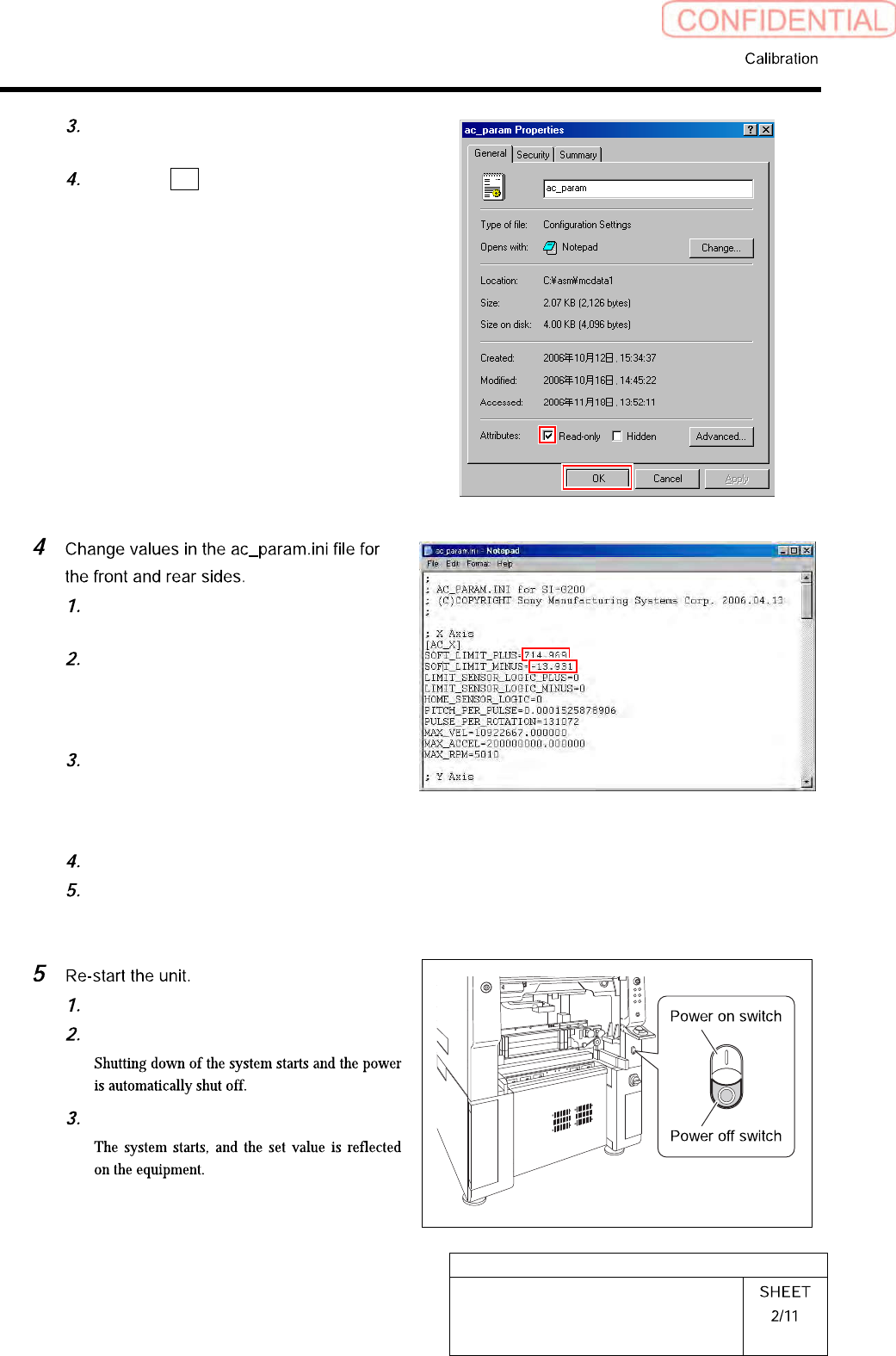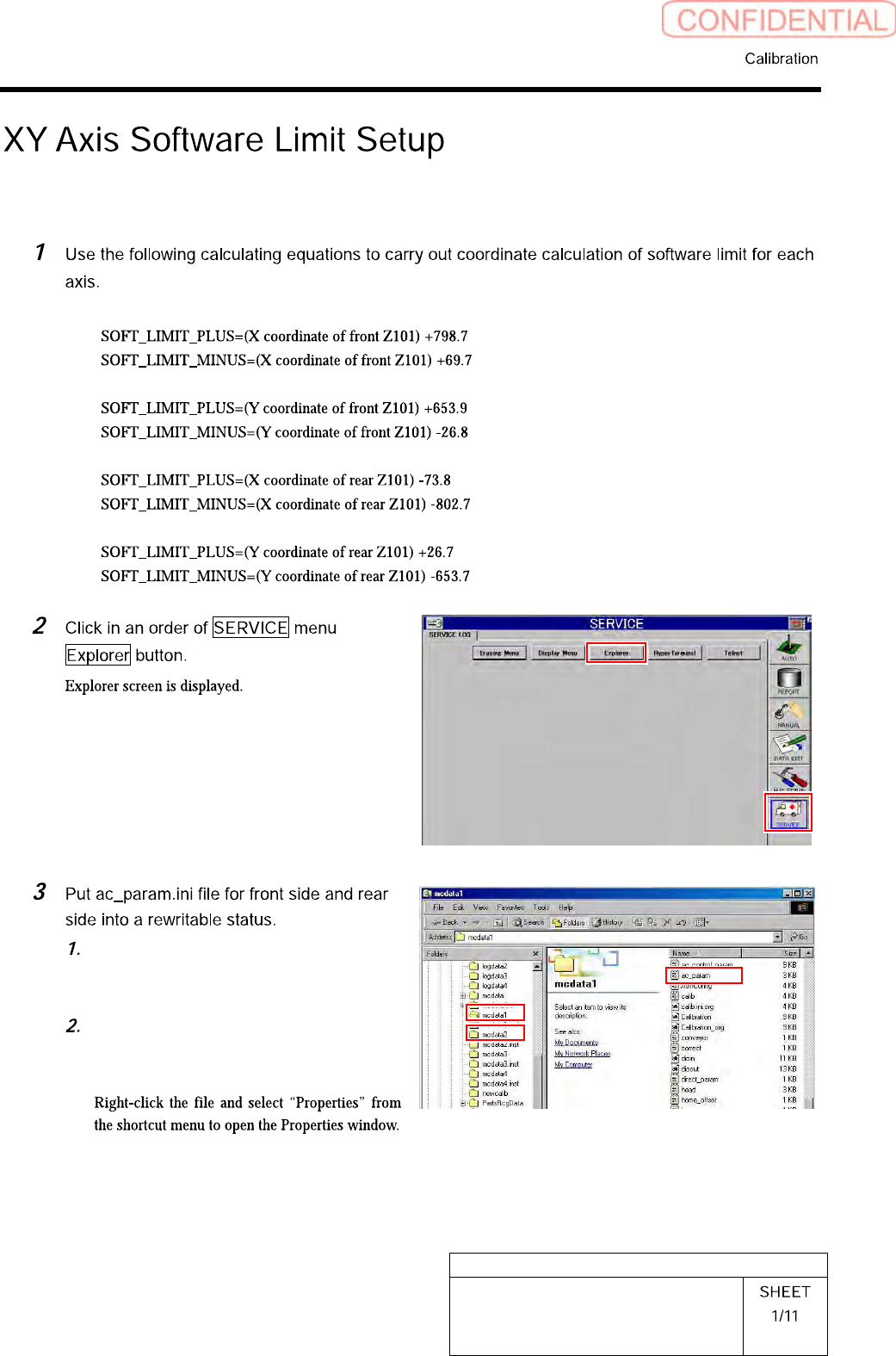 HLGB-10314-01 XY Axis Soft w are Limit Setup Unche c k “Read-only” on the Properties window of the ac_ p aram.in i file. Click the OK button. Open Notepad by th e ac_param.ini file. Input the values calcu l ated in the p…