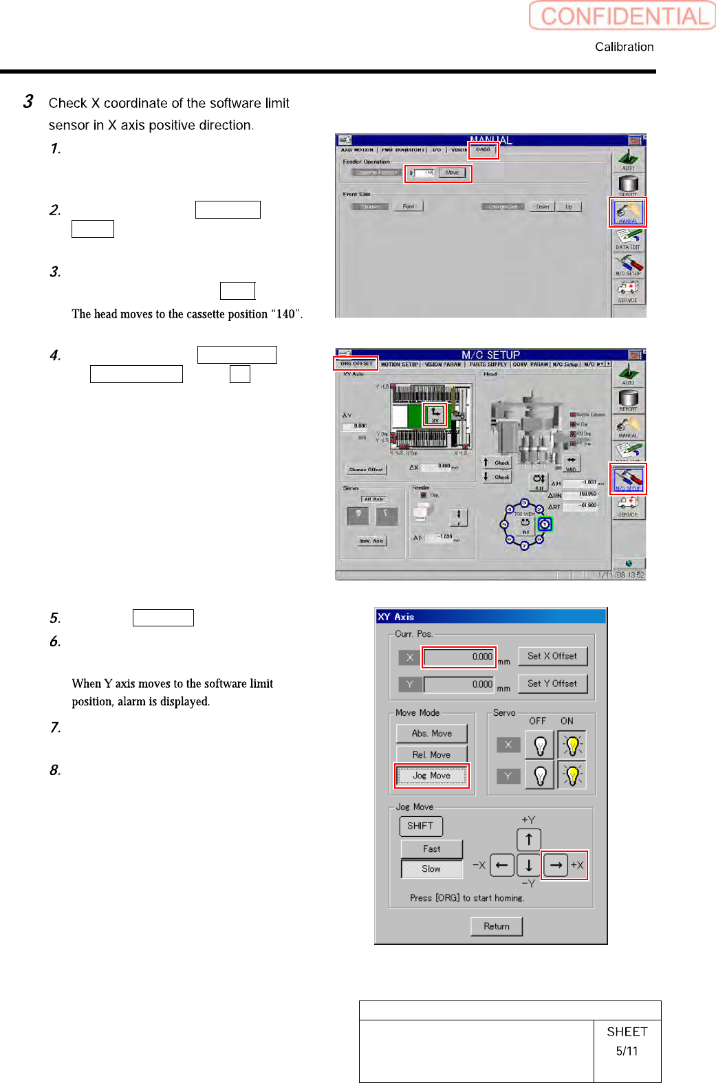 HLGB-10314-01 XY Axis Soft w are Limit Setup Press the [ORG] button on the operation panel to p e rform orig i n position return. Click i n an order of M ANUAL menu CASS. tab. Cassette operation sc reen is displayed. I…