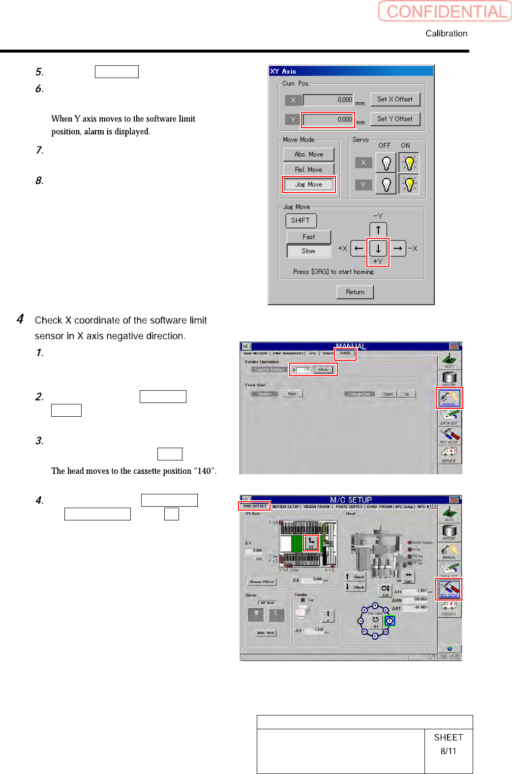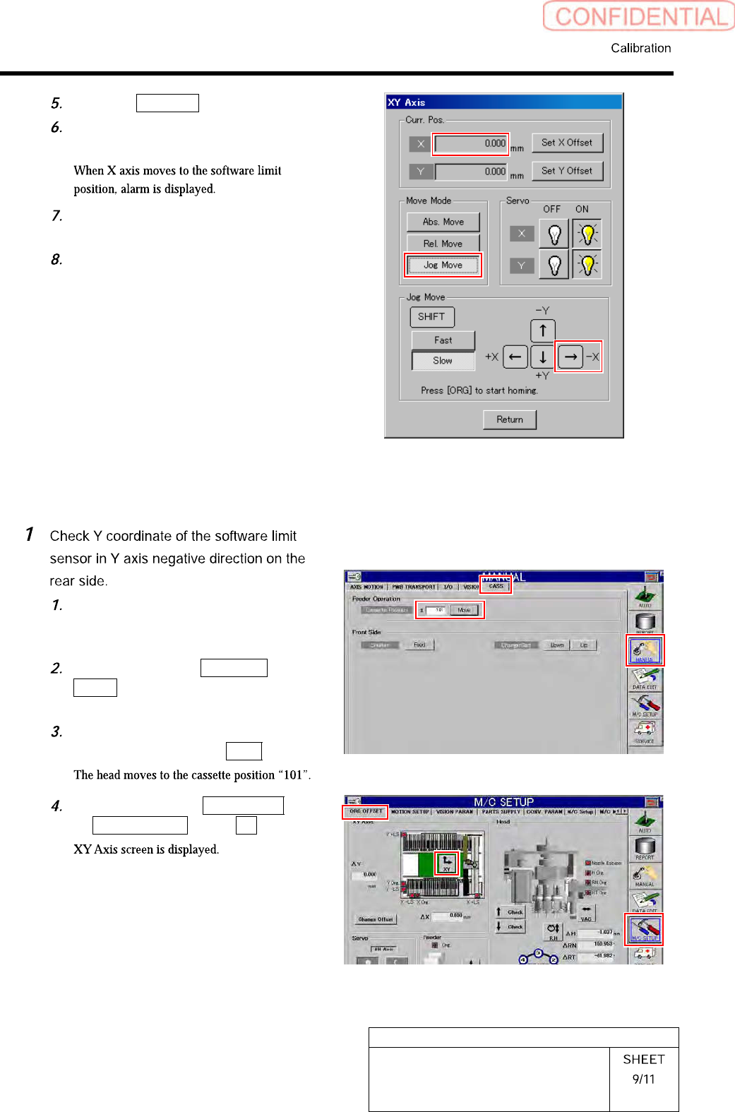 HLGB-10314-01 XY Axis Soft w are Limit Setup Click the Jog Move button. Press the lower cursor to jog- move Y axis in positive direction. Press the [RESET] button on the operation panel to cancel the al arm. Check that t…