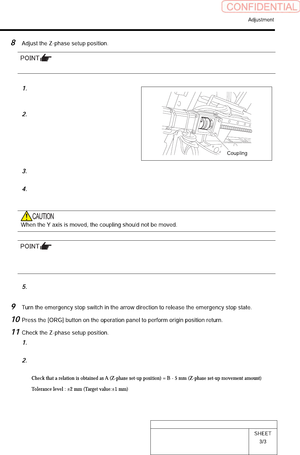 Adjust the Z-phase setup position by adjusting the positional relation between the motor and ball screw.