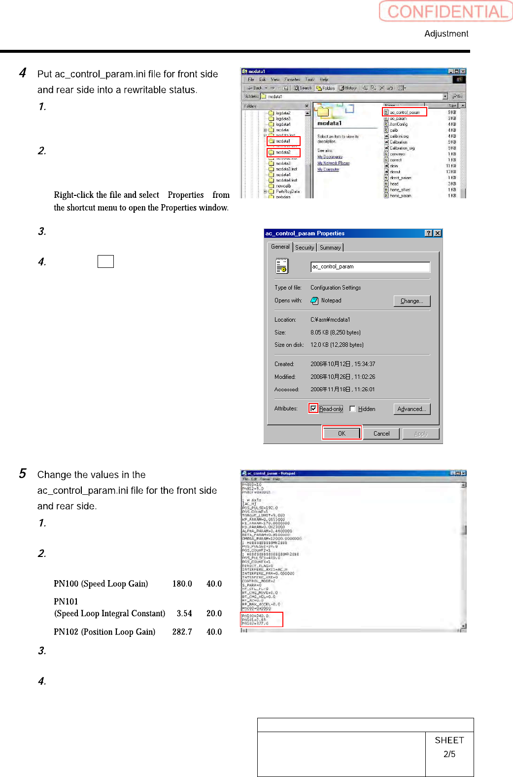 HLGB-10403-01 H A xis Gear Z-phase Matching For the front side, open Properties window for ac_co ntr ol_param.ini fil e in C:¥asm¥mcdata1. For the rear side, open Properties window for ac_co ntr ol_param.ini fil e in C:¥…