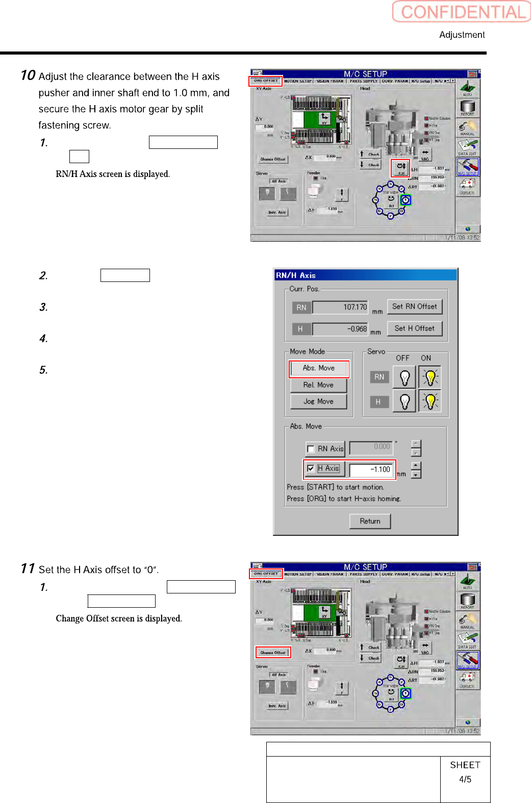 Perform position adjustment of the lower end sensor (H-CW) in the post-process of “Adjustment H axis