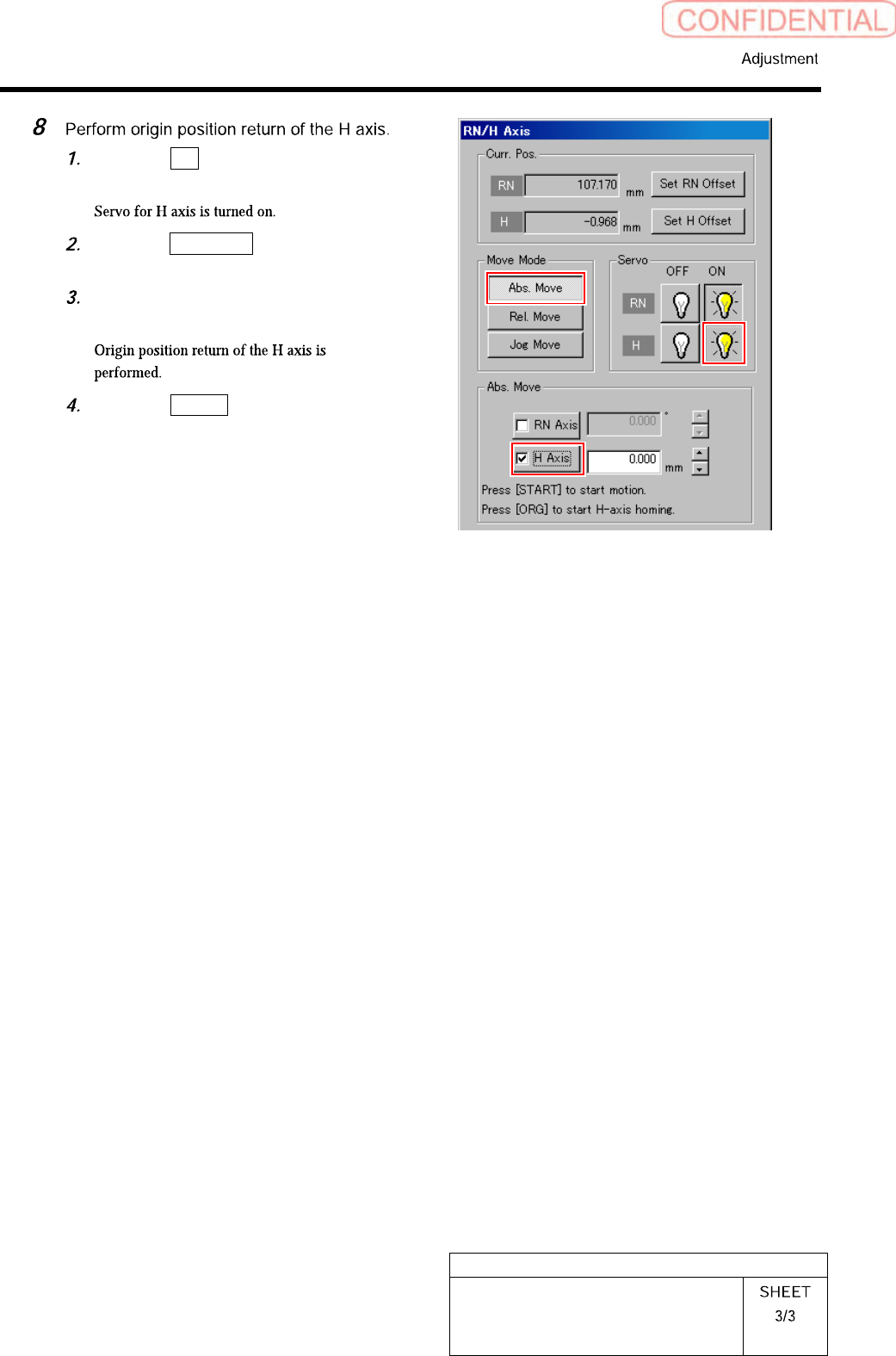 HLGB-10405-01 Adjustment of H A xis Lower End OT Sensor (H-CW) Perform this working on b o th he ads on t he front side and rear side. [Necessary jigs] • H Axis sensor adjusting Jig (L=26.6 mm, 26.5 mm) [Procedure] Push …