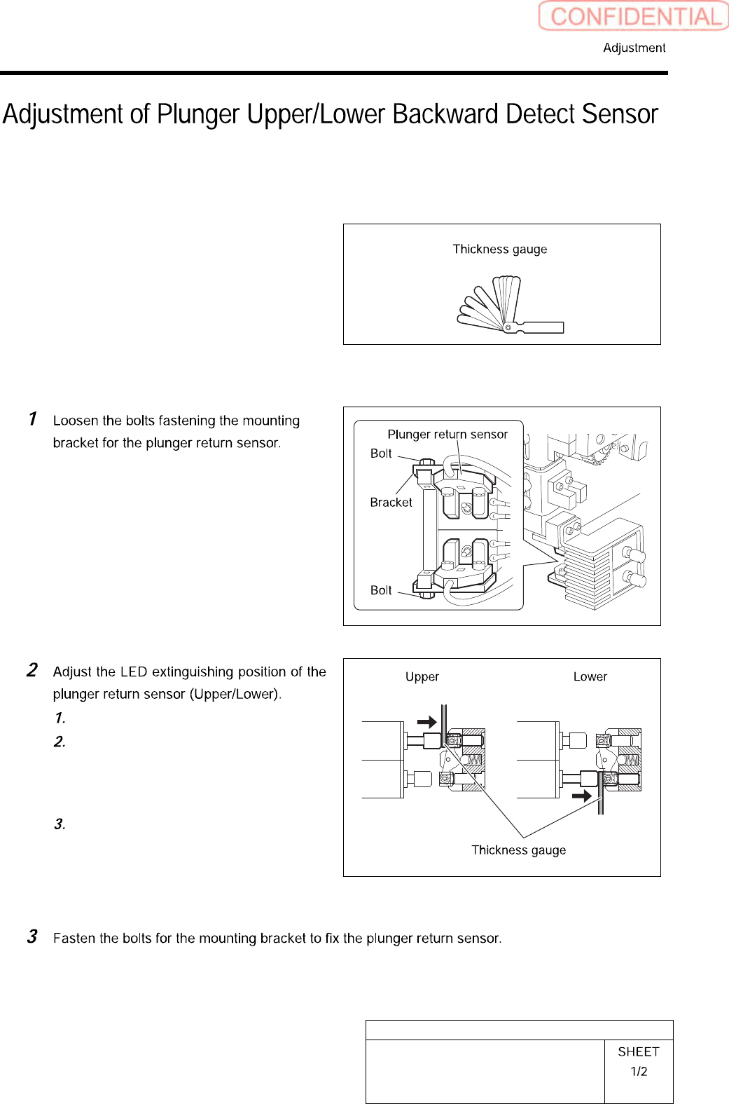 HLGB-1041 1- 01 Adjustment of Plunger Upper/Lower Backward Detect Sensor Press in the mechani cal valv e. Pull out the plung er by hand, and pinch a thickness g auge of t=1 .2 mm between the plunger and the mechanical va…
