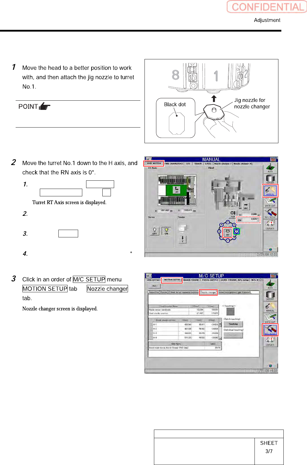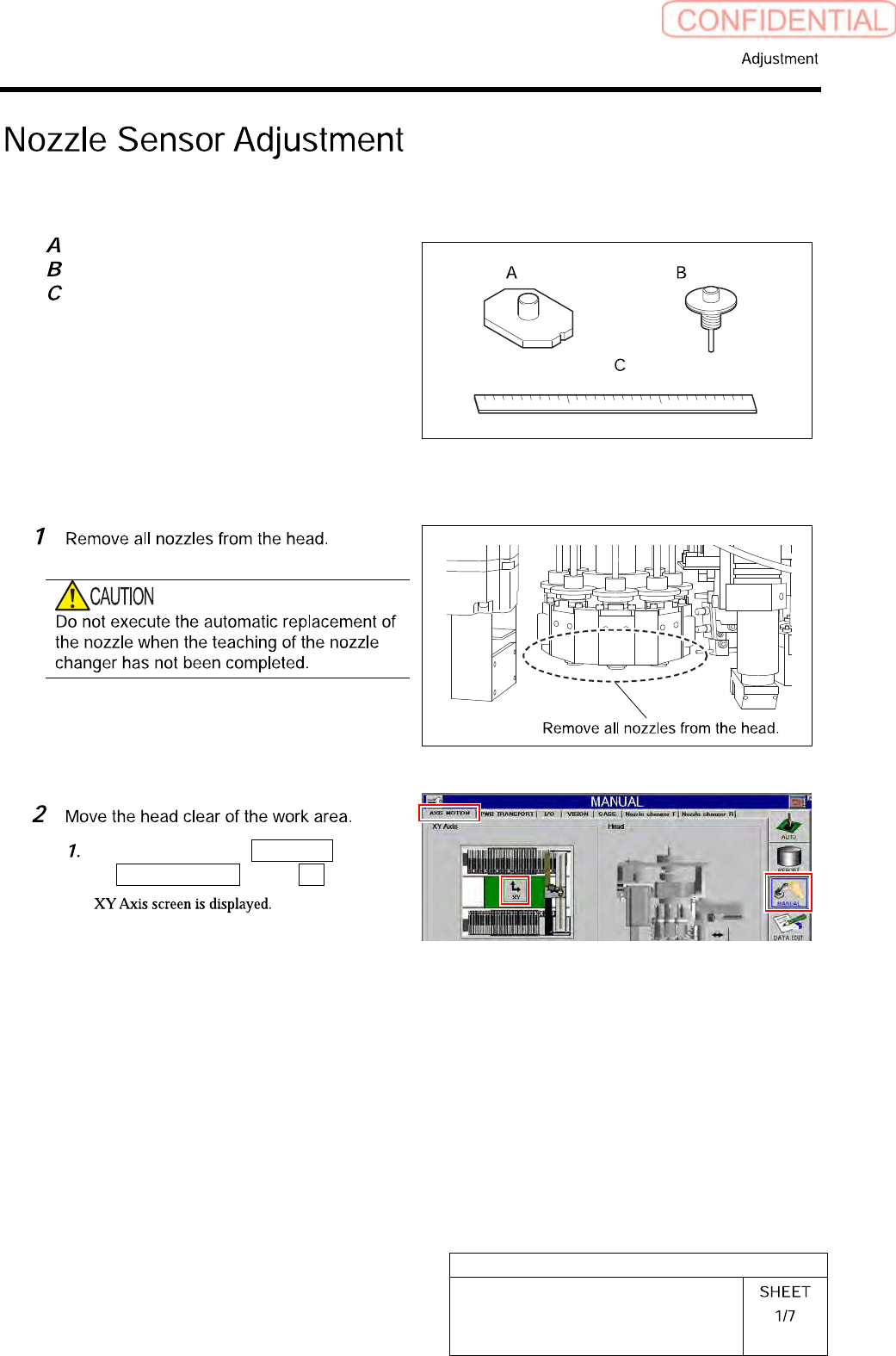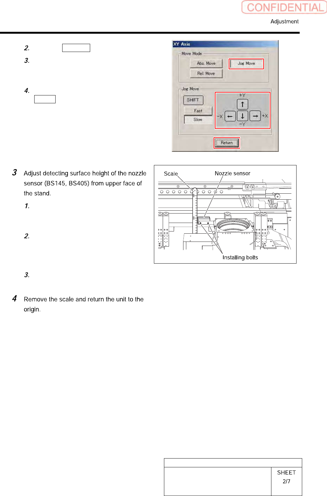 HLGB-10415-01 Nozzle Sensor A djustment Click the Jog Move button. Press the cursor key to move th e head to a position where w orki ng is ea s ily performed. After moving the head, click the Return button to close the X…
