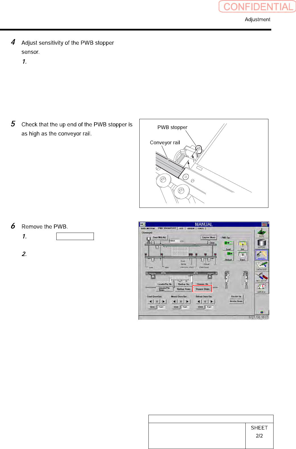 HLGB-10418-01 Adjustment of PWB St op per Sensor Make adjustment by turning th e sensitivity adjustment volume of the sensor amplifier so that t he PWB stopper sensor is turned on (both o f the green LED and orange LED l…