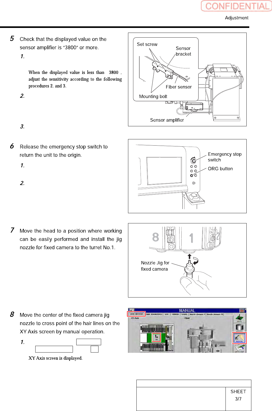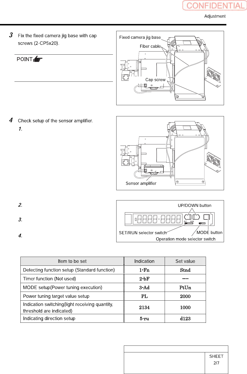 HLGB-10419-01 Fixed Ca mera Pickup Check Sensor Adjustment Carry out working with care not to damage the fiber cable for parts presence/absence detecting sensor . Open the cover for the sensor amplifier . T urn the SET/R…