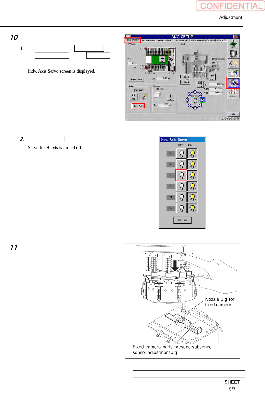 HLGB-10419-01 Fixed Ca mera Pickup Check Sensor Adjustment T urn the SET/RUN selector switch to SET side. Check that the sens or adjusting nozzle (1) is just below the fix ed camera jig nozzle. Press either one of DOWN o…