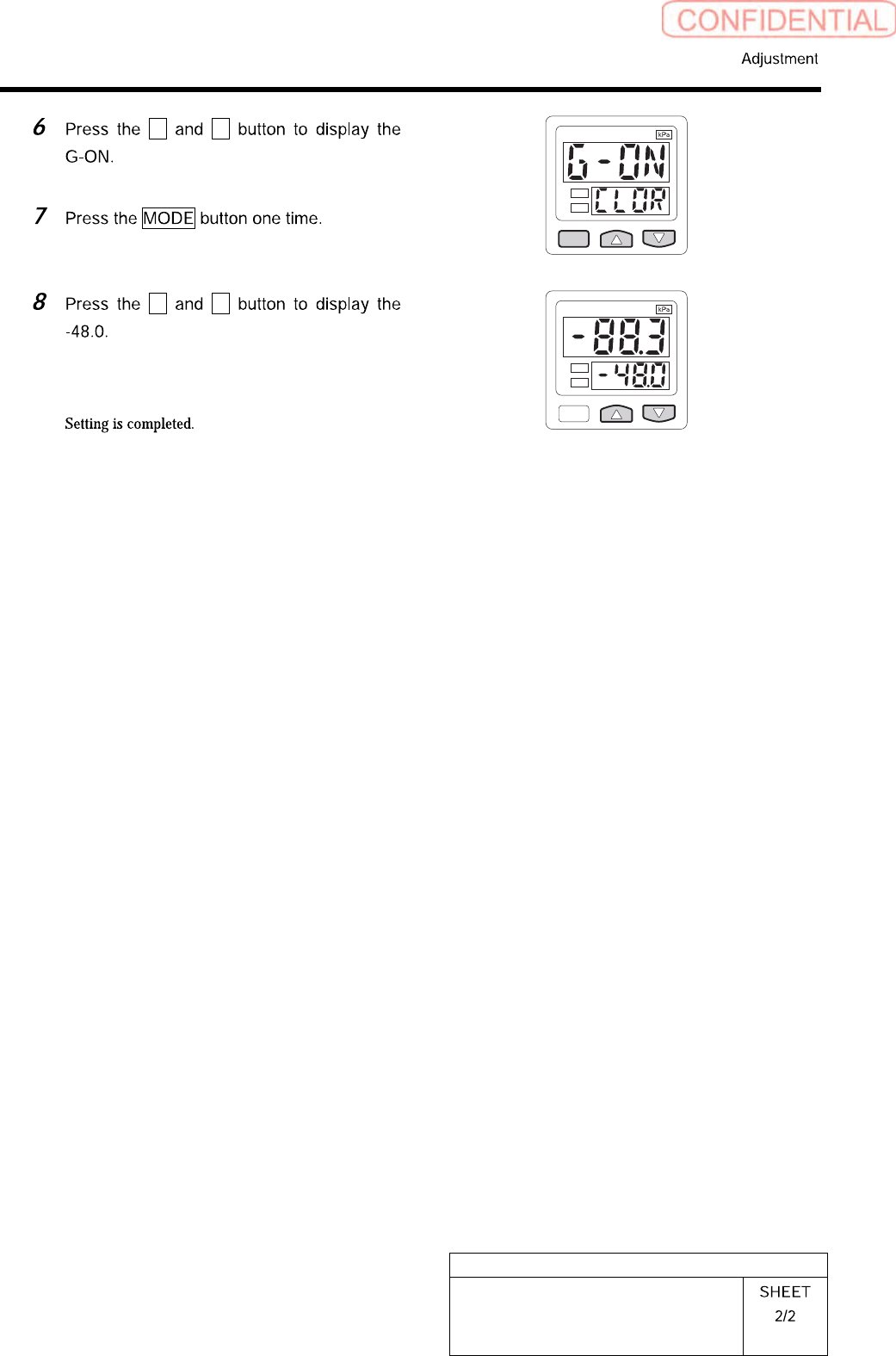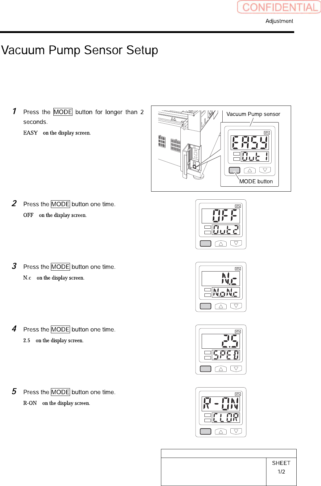 HLGB-10423-01 V acuum Pump Sensor Setup This section describes setting procedure for the V acuum Pump sensor located on the on the interface panel on the back of the unit. [Procedure] 1 2 1 2 1 2 1 2 1 2