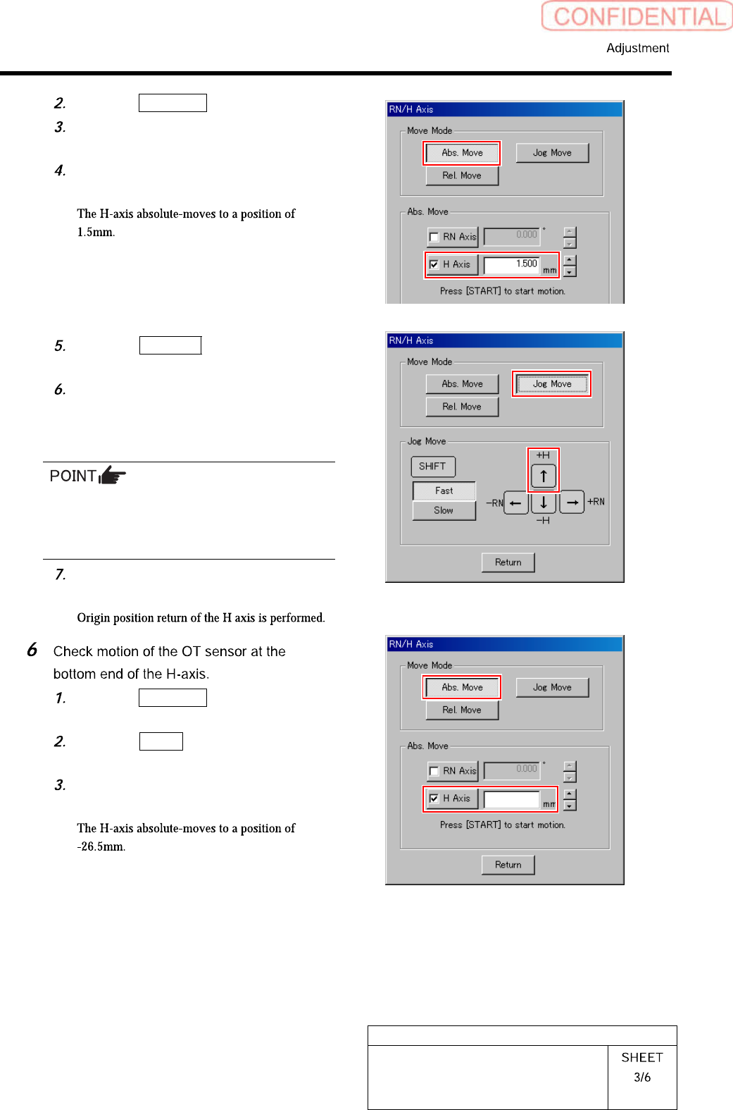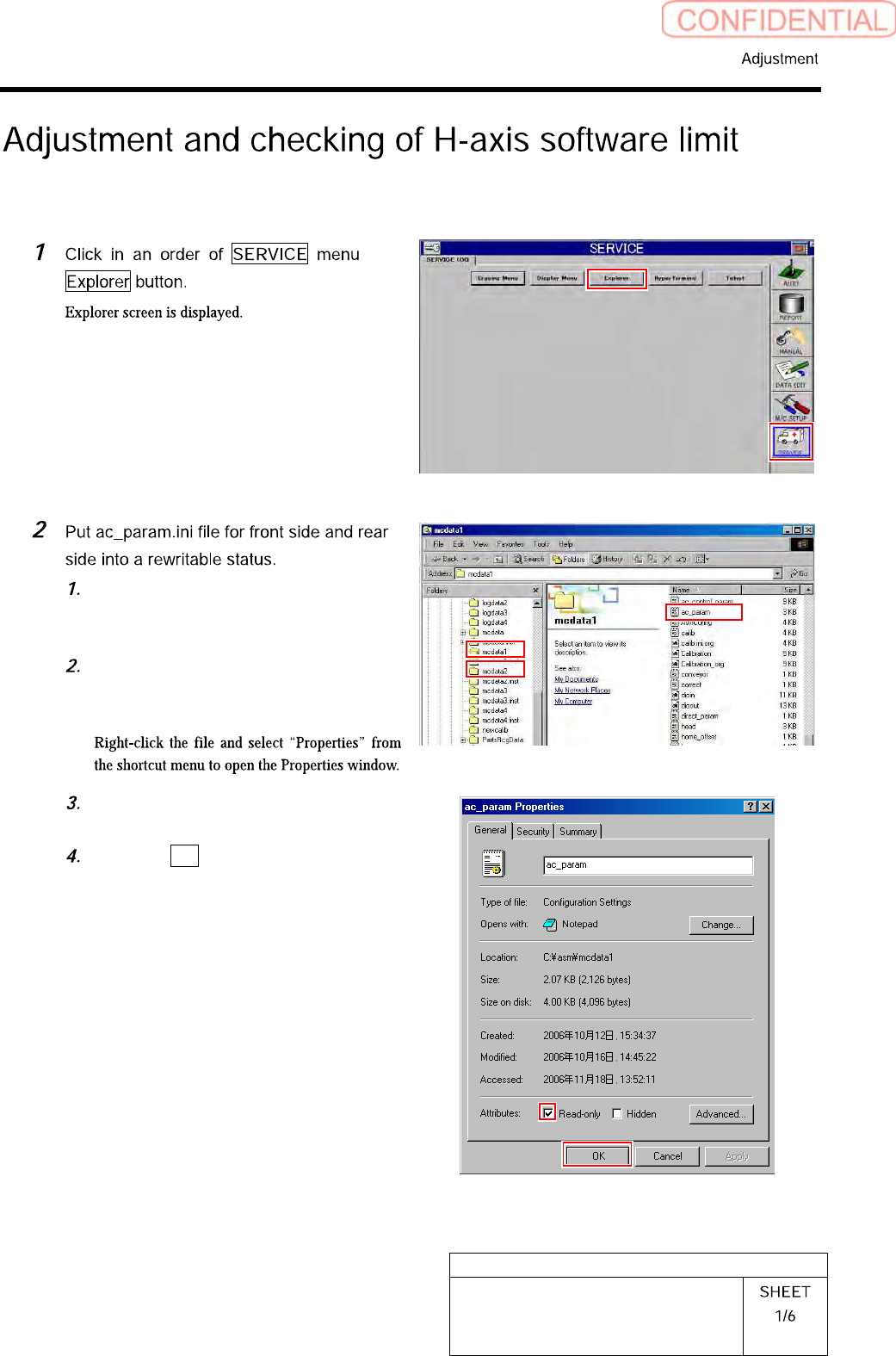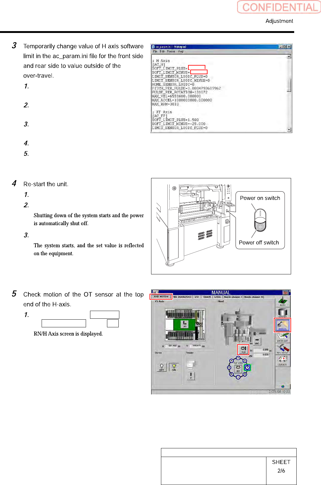 HLGB-10425-01 Adjustment and checking of H-axis soft ware lim it Open Notepad by th e ac_param.ini file. Input “3.800” into a s pace of “SOFT_LIMIT_PLUS” of [AC_ H]. Input “- 30.00” into a space of “SOFT_LIMIT_MINUS” of …