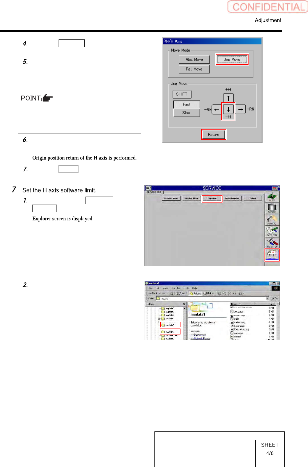 HLGB-10425-01 Adjustment and checking of H-axis soft ware lim it Click the Abs. Move button. Click the H - axis button and input “1.5” into the input space. Press the [ST ART] butto n on the operation panel. Click the Jo…