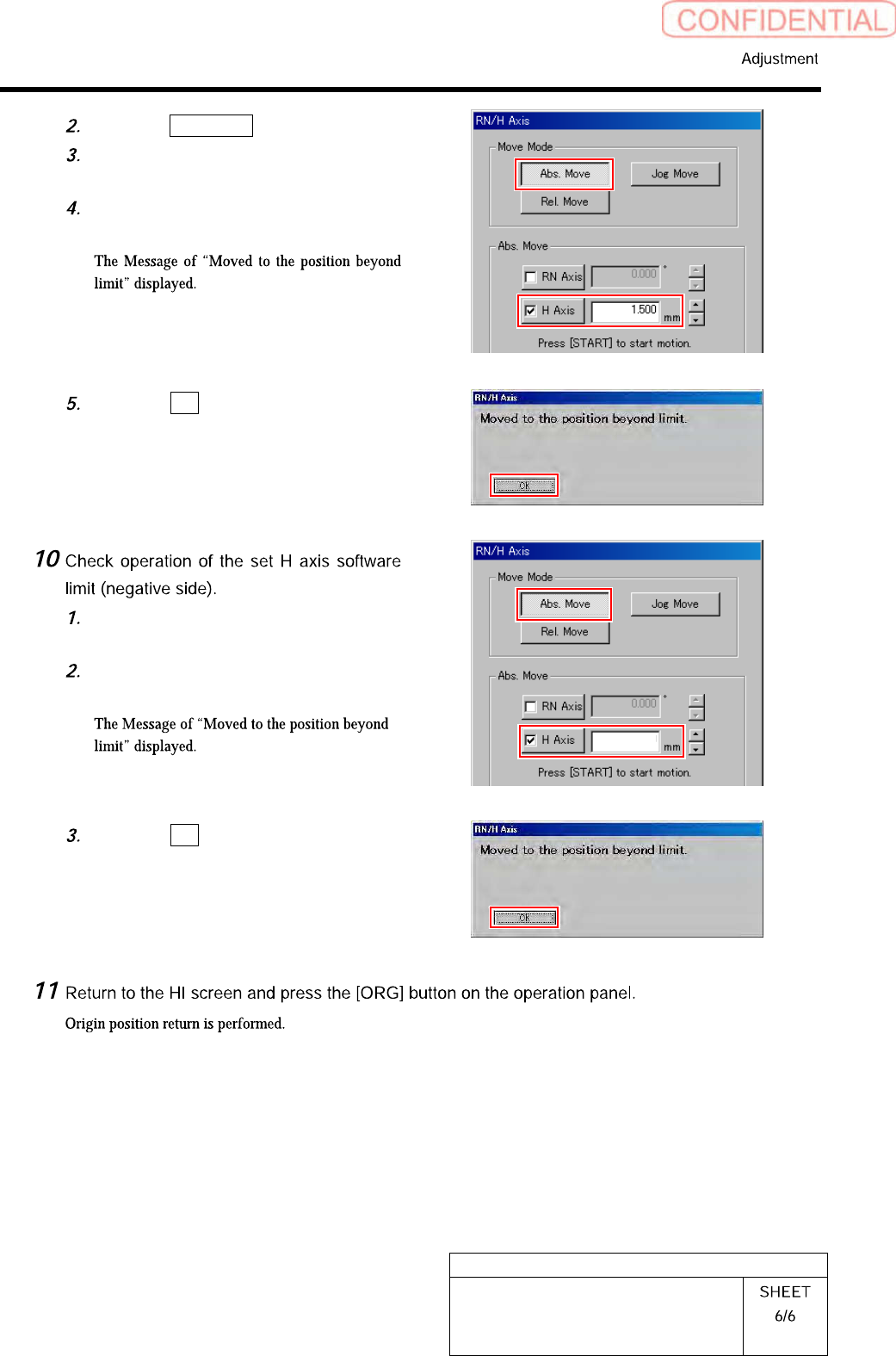 Adjustment and checking of H-axis