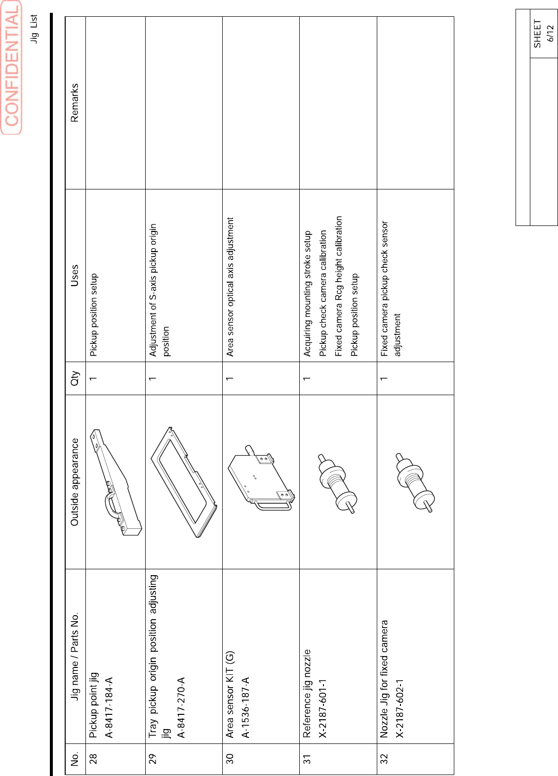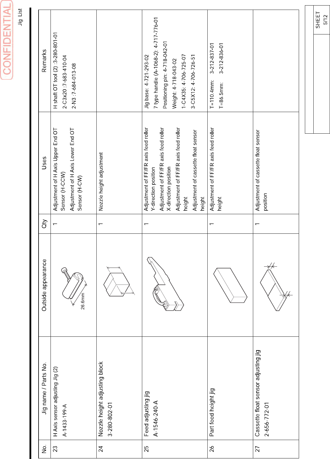 No. Jig name / Parts No. Outside appearance