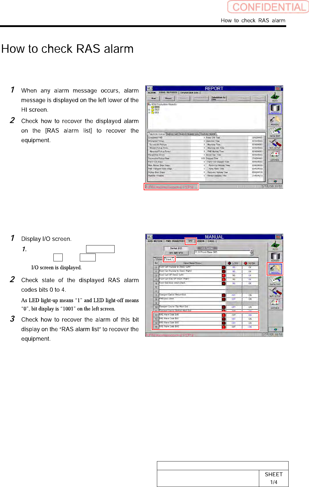 BBGB-10102-01 How to check RAS alarm [Checking procedure on DR board] When the HI screen is not displayed due to t rouble on the equipment, check RAS alarm a nd perform recover y operati on according to the procedure des…
