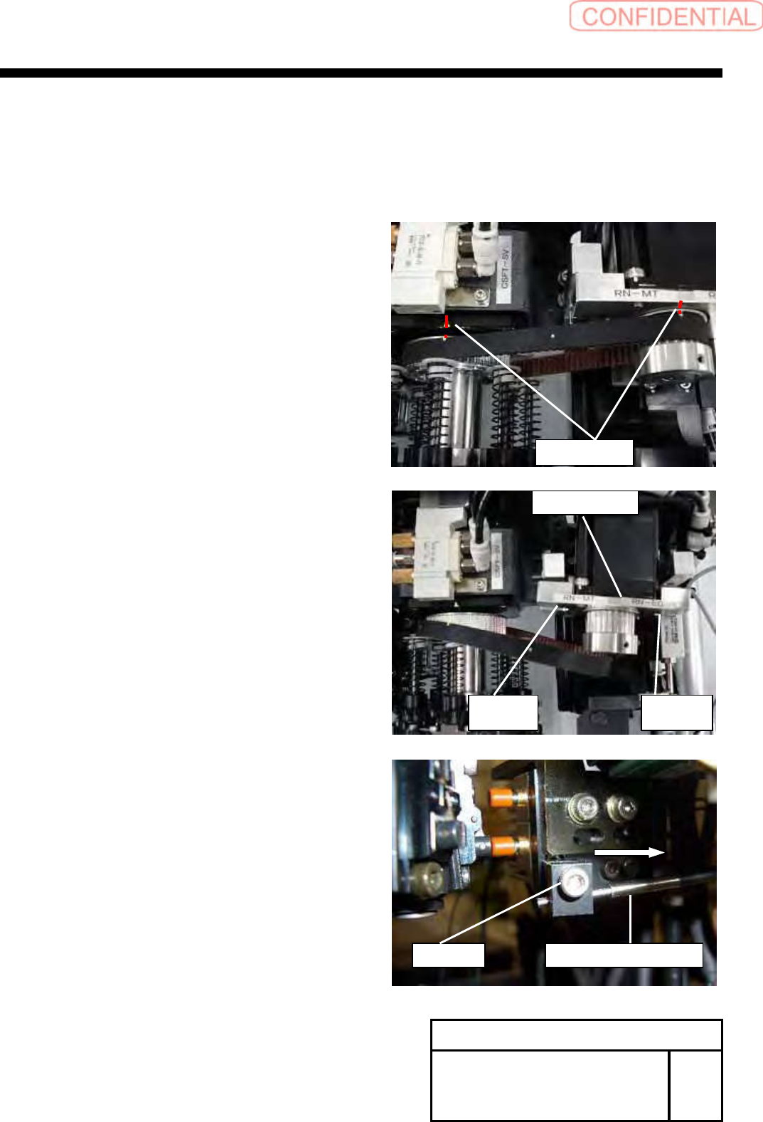 Chan ge Procedu re for RN- axis Timi ng Belt 8 Remov e the inner sha f t, the n move the positio n to under the H axis leve r. 9 Remov e the timing bel t through t he gap betwee n H axis leve r and plunger. Chan ge Proce…