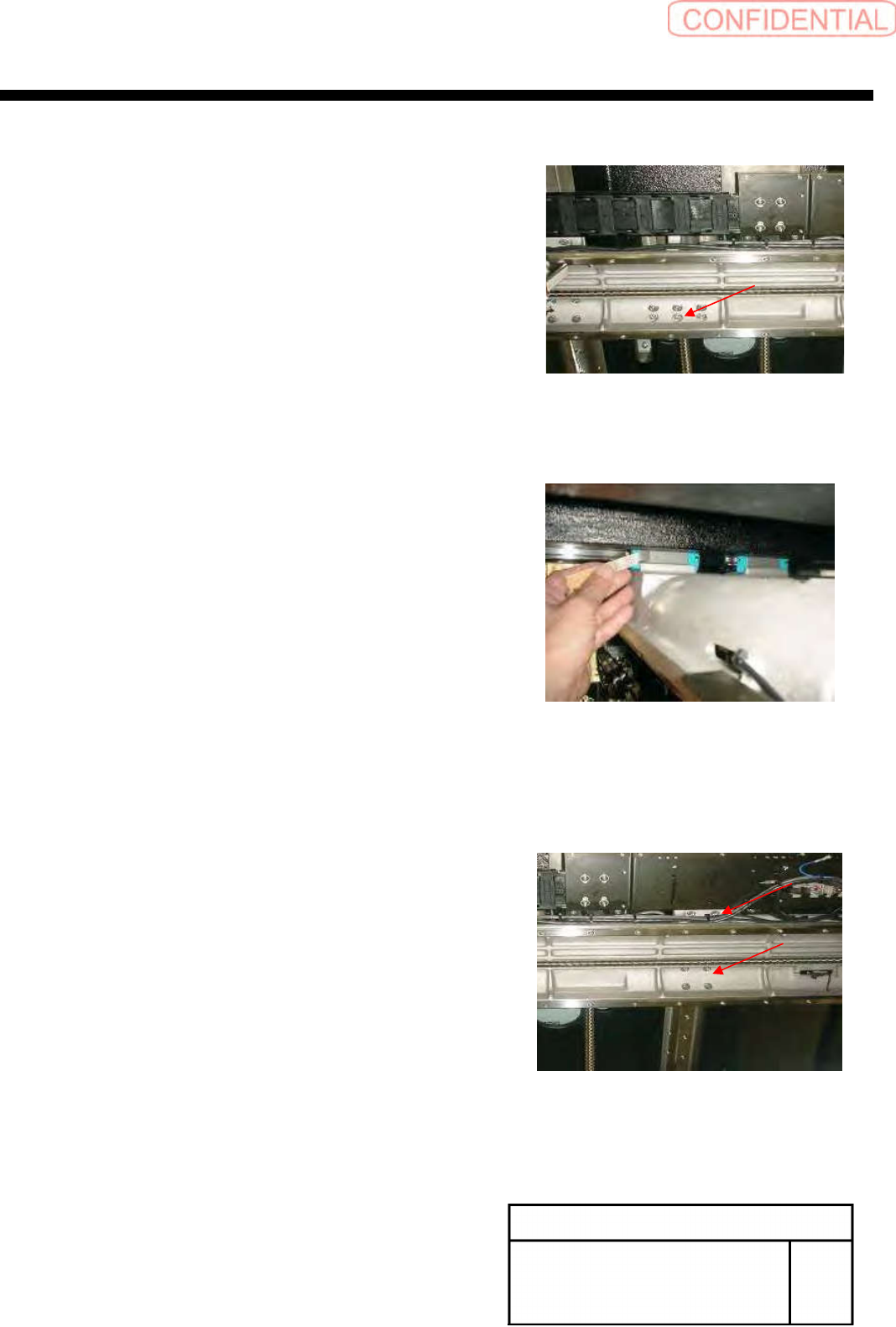 XY axis movable parts RPGB-1 1301-01 Change Procedure for Y Axis LM-GUIDE SEET 6 / 9 12, Confirm the position of X axis frame, 2 – 3mm from the motor side of mechanical end Then Install ball screw of nut folder to the X-…