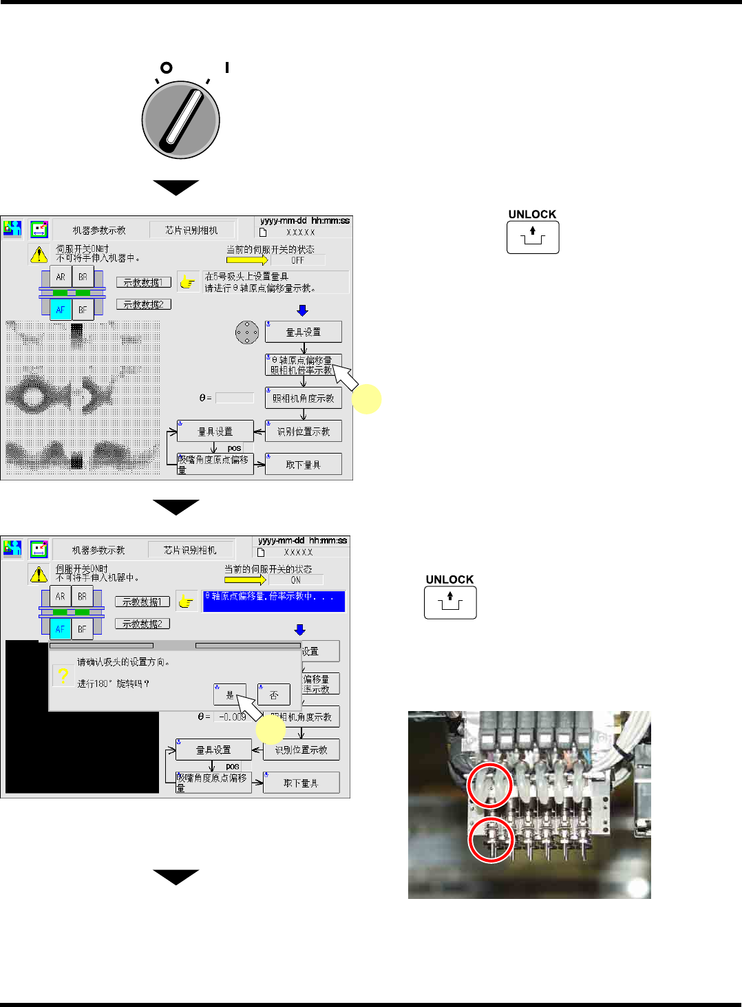 CM602-L 维修手册 2.2 机器参数的示教 步骤 Pa ge 2- 65 12. 按操作面板的 + [ 照相机角度示 教 ] 。 ∗ 当角度偏移量超过规定 值时,将会出现相应 的 提示,本机器将停止运 行。此时,请与本公 司 联系。 13. 按操作面板的 + [ 识别位置示 教 ] 。 高速吸头 (12 吸嘴 ) 时 ∗ 请确认 “ 请在 8 号吸嘴处重新 设置量具。 按 [ 执行 ] 即开始再次示教。 ” 的信息后, 再进行下一…
