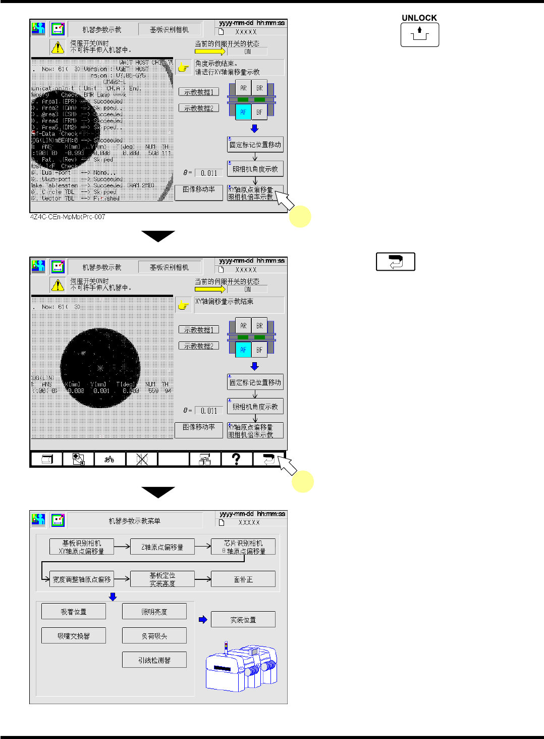 CM602-L 维修手册 2.2 机器参数的示教 步骤 Pa ge 2- 36 2.2.2 Z 轴原点偏移量 ∗ 虽然在此以高速吸头 (12 吸嘴 ) 为例进行说明, 但是高速吸头 (8 吸嘴 ) 也是同样的步骤。 步骤不 同时,并列记述 12 吸嘴和 8 吸嘴的说明。 高速吸头 (12 吸嘴 ) 使用工具 标准吸嘴 130S × 12 根 需要时间 5 分钟 高速吸头 (8 吸嘴 ) 时 使用工具 标准吸嘴 130 号 × 8…