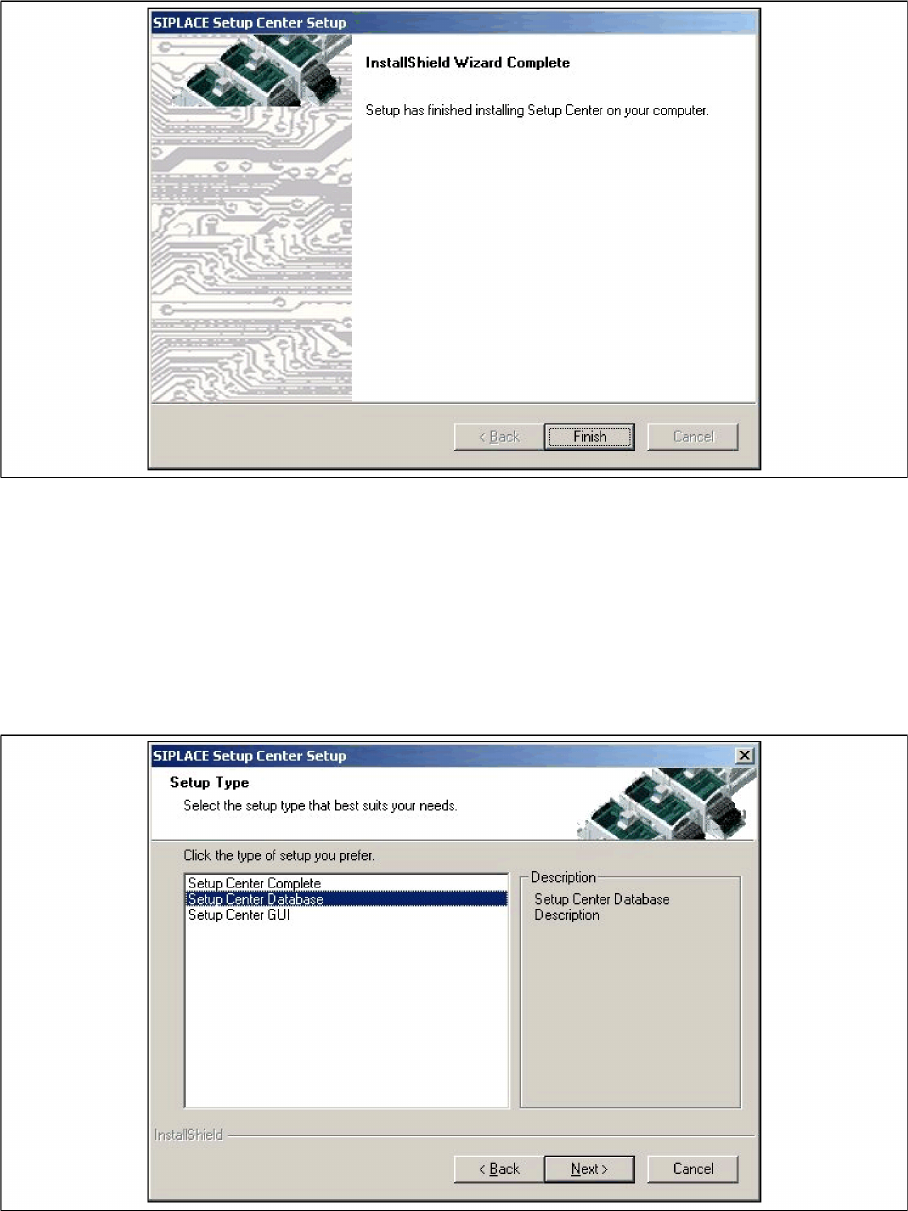 X Select the SIPLACE Setup Center Database setup type.