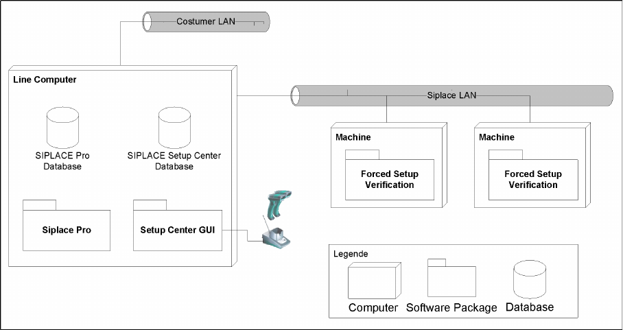 The Setup Center GUIs are connected to the local SIPLACE Pro and to the central Setup Center