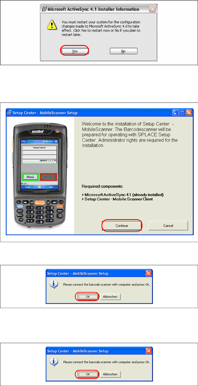 Pls. start Setup Center - MobileScanner Installation after the restart from CD, as described in chapter